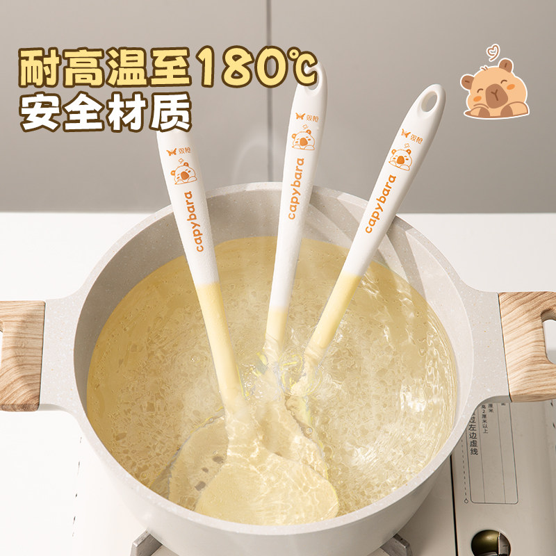 双枪硅胶锅铲家用炒菜铲子不粘锅专用汤勺漏勺饭勺耐高温厨具
