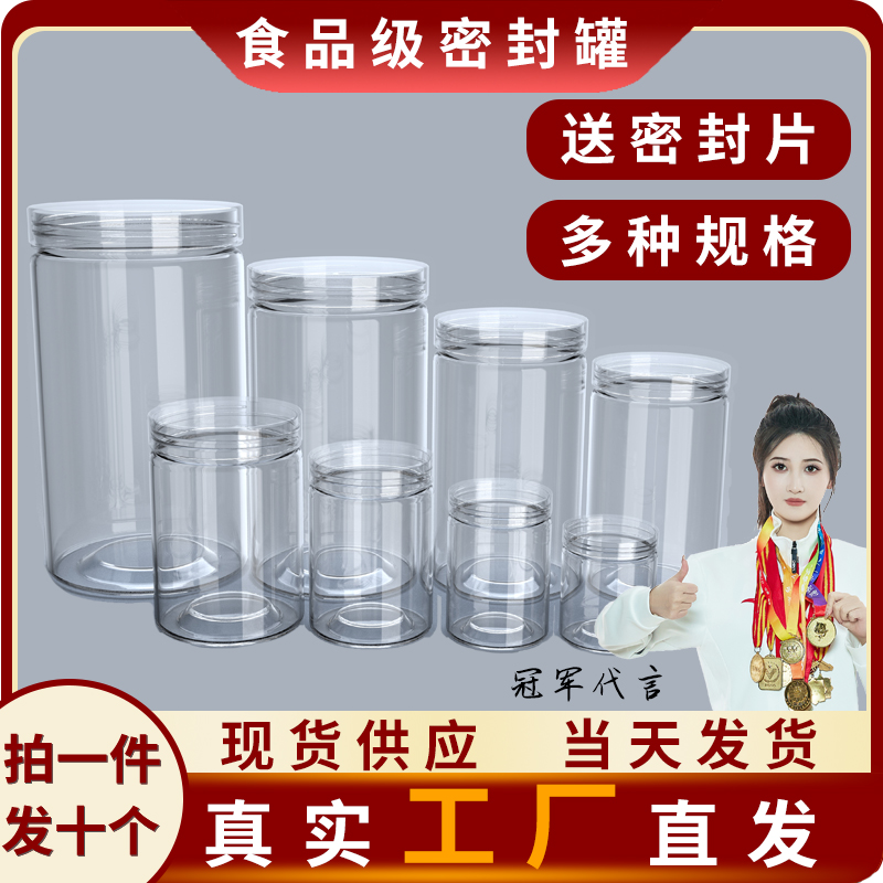 塑料瓶子空瓶透明密封罐食品级包装罐子收纳专用广口储物盒小圆桶