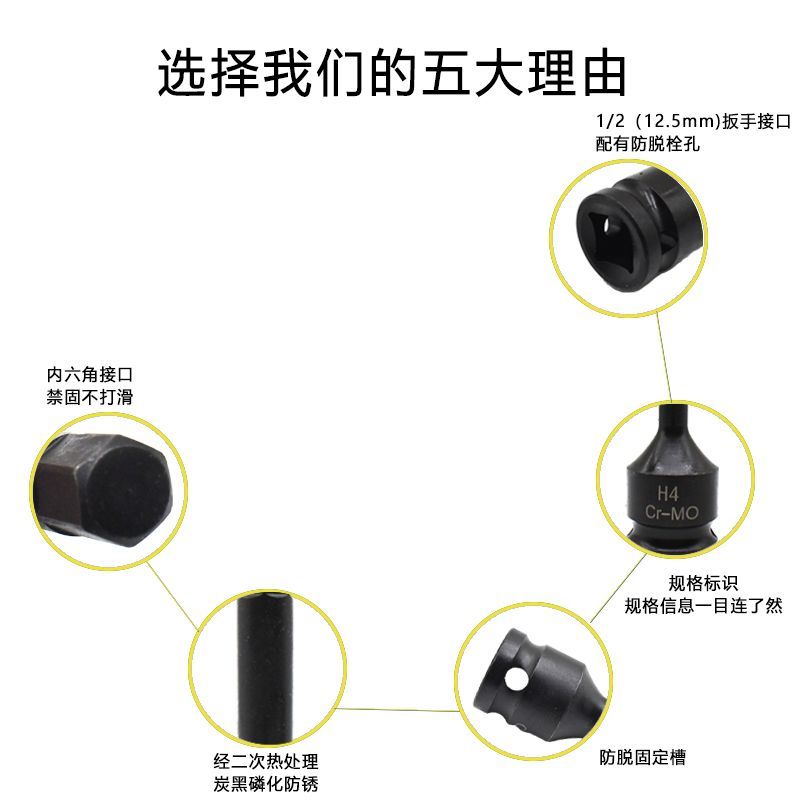 内六角1/2风炮连体批头气动六角旋具套筒梅花套筒六角风炮套装批