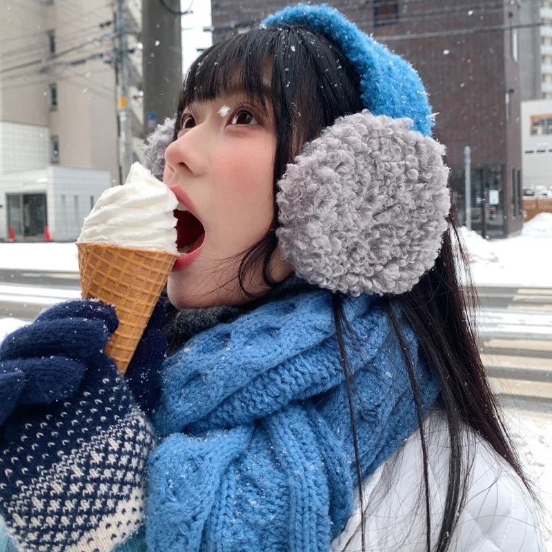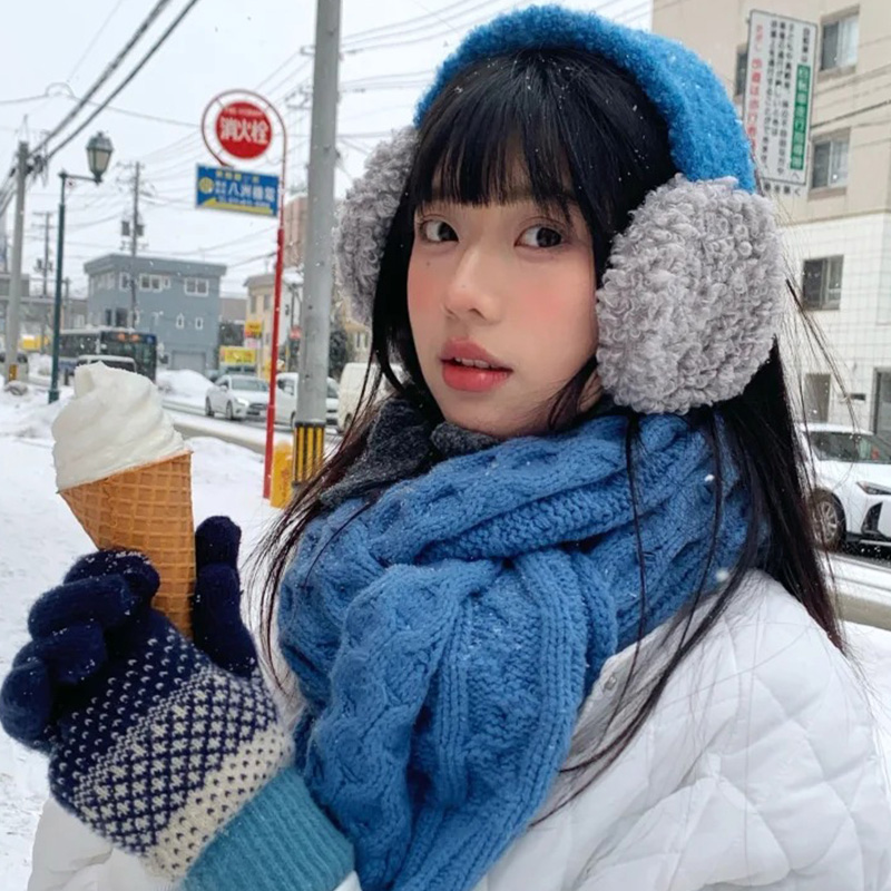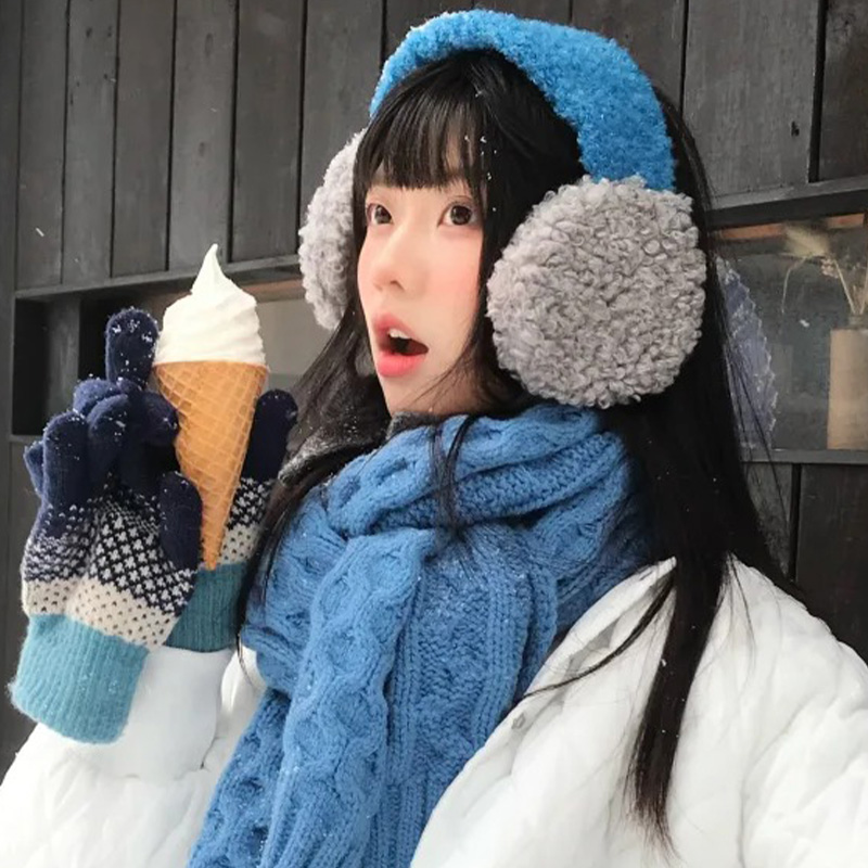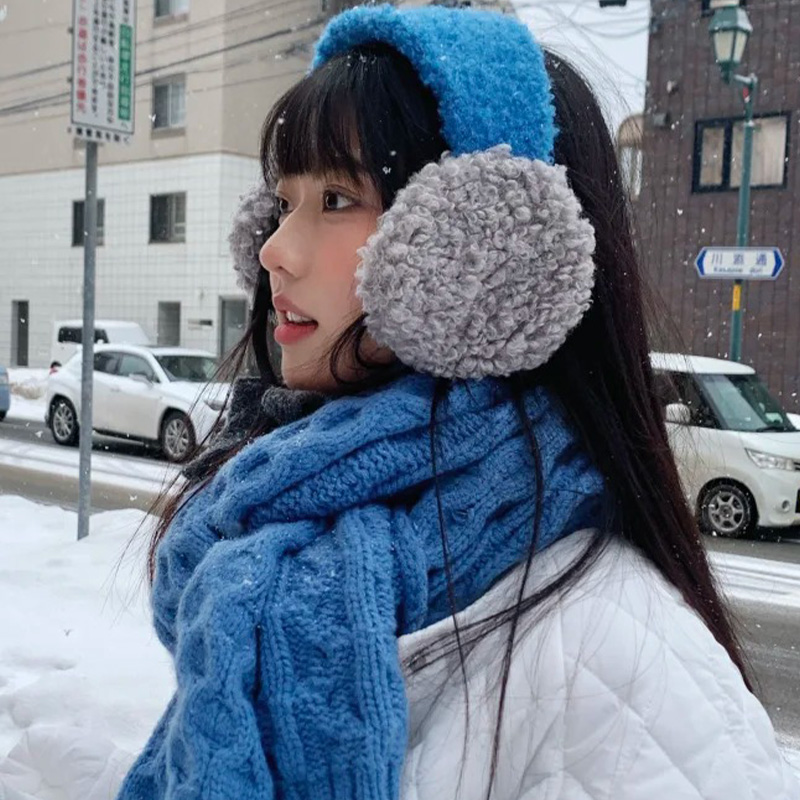 蓝色羊羔绒耳罩绑带女冬季保暖防寒风户外骑行系带耳套耳包耳捂子