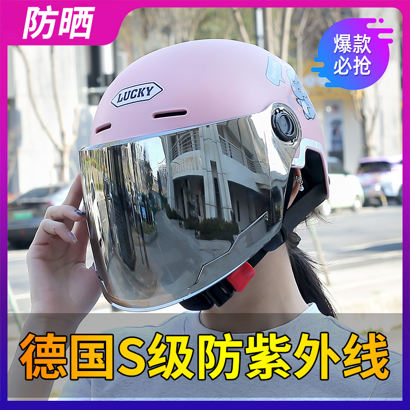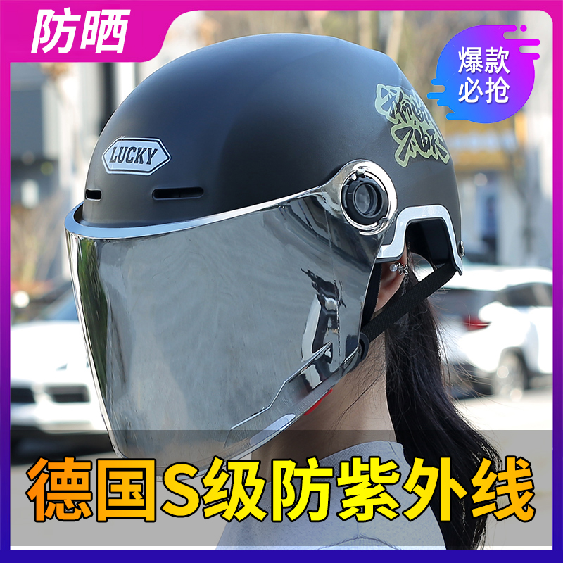 3C认证电动摩托车头盔男女士夏季防晒防紫外线夏天轻便半盔安全帽