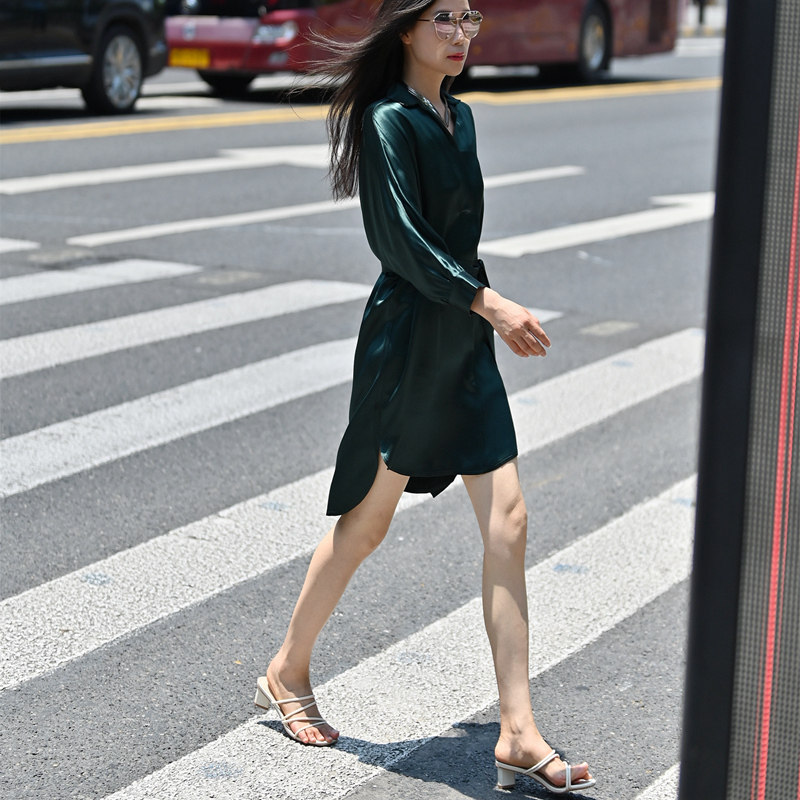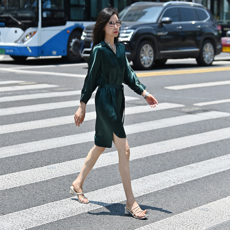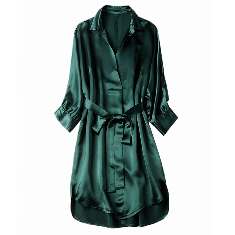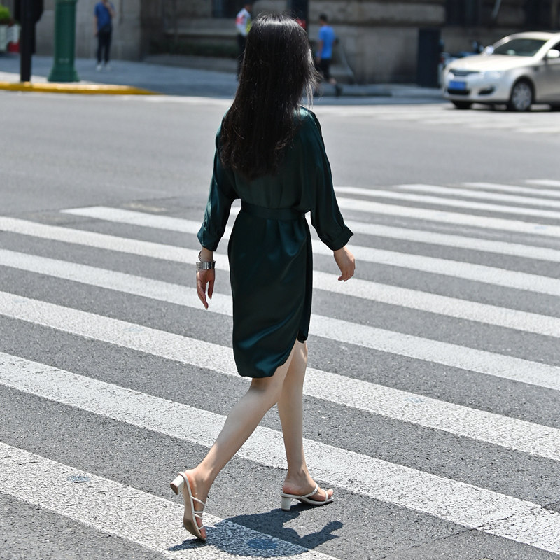 2024春夏季新品日本进口三醋酸缎面连衣裙女士通勤七分袖裙子中裙