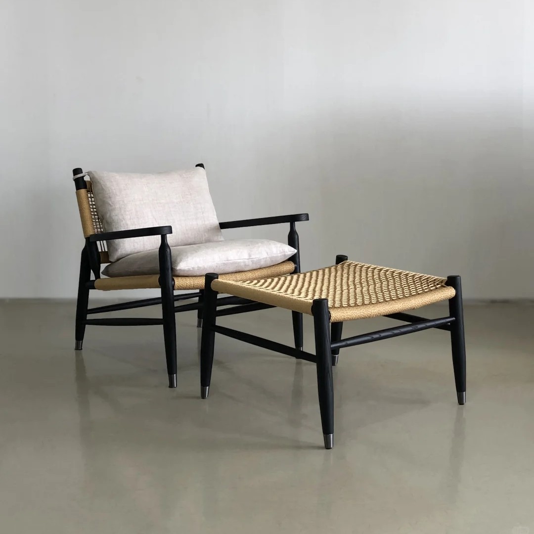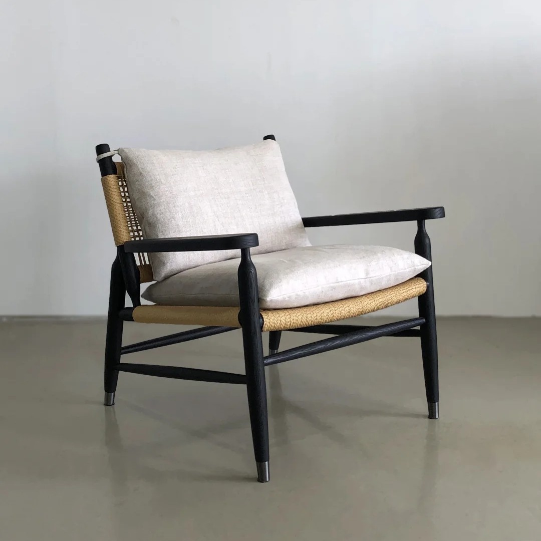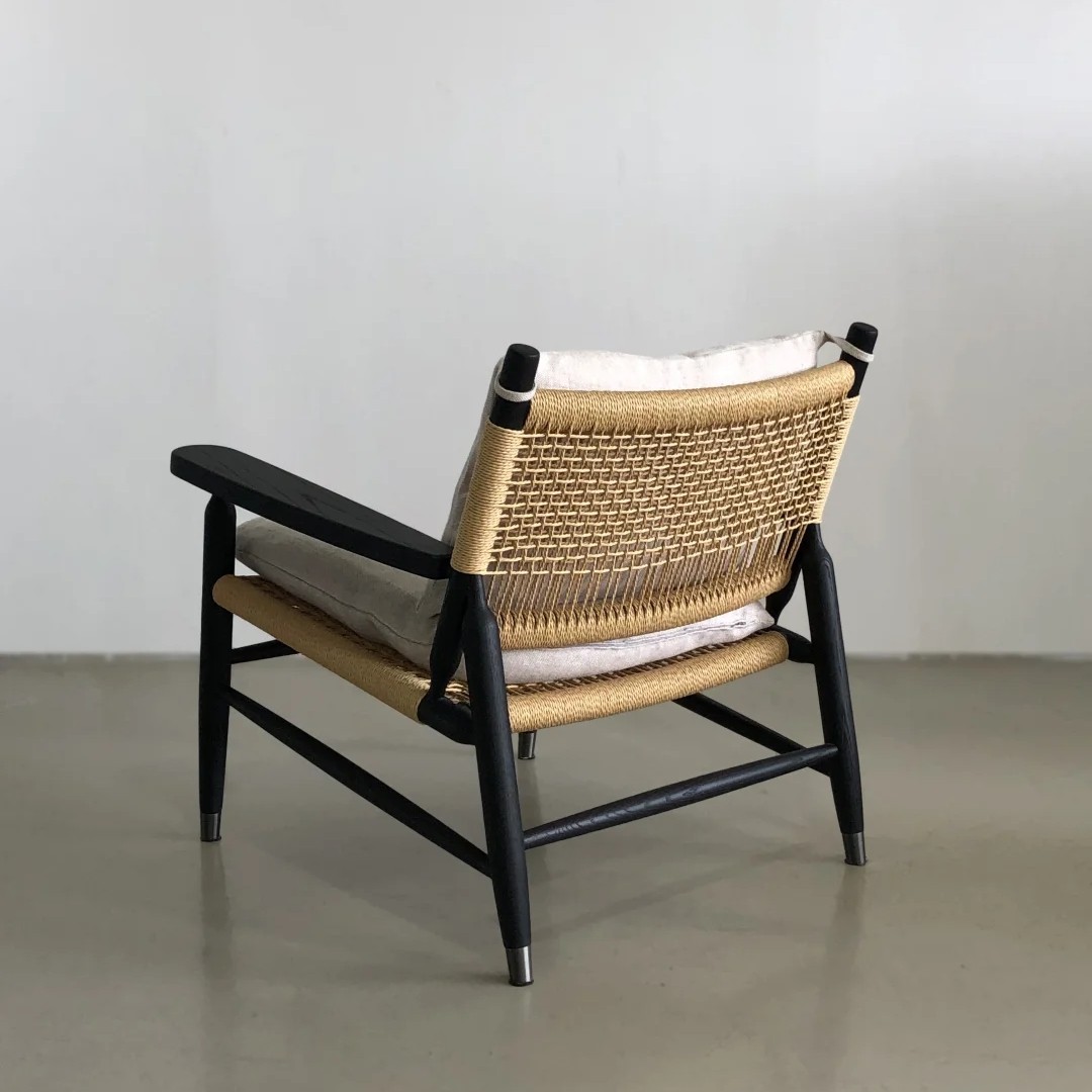 北欧设计师实木家用白蜡木餐椅日式侘寂风餐桌椅子设计师绳编椅