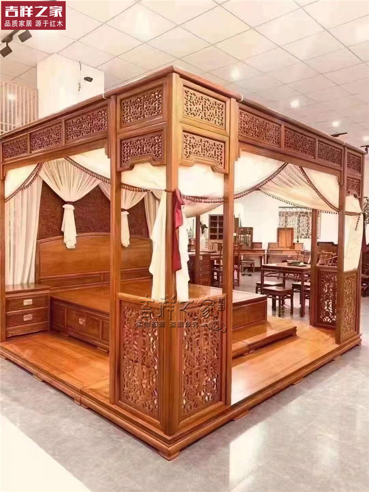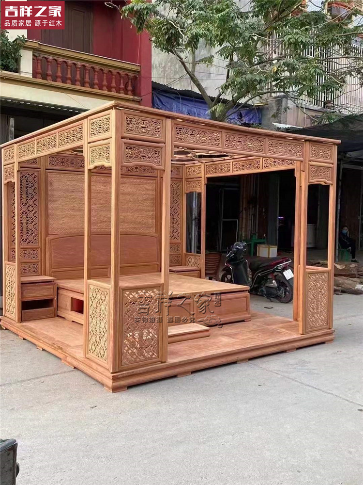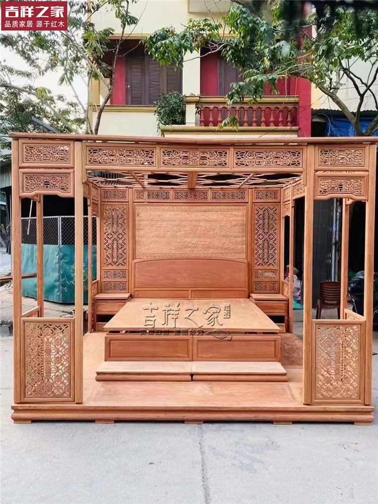 缅甸花梨架子床大果紫檀双人床 越南红木大床 花梨木婚床住宅家具