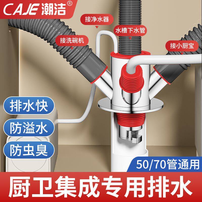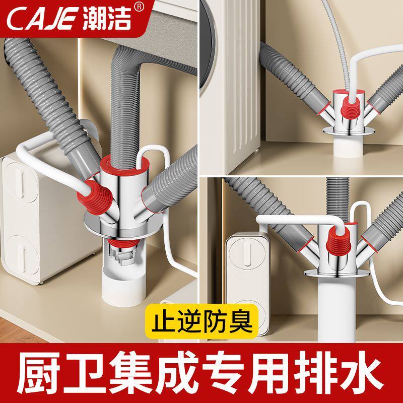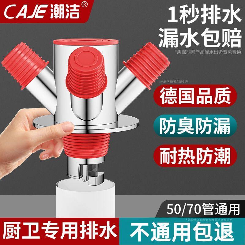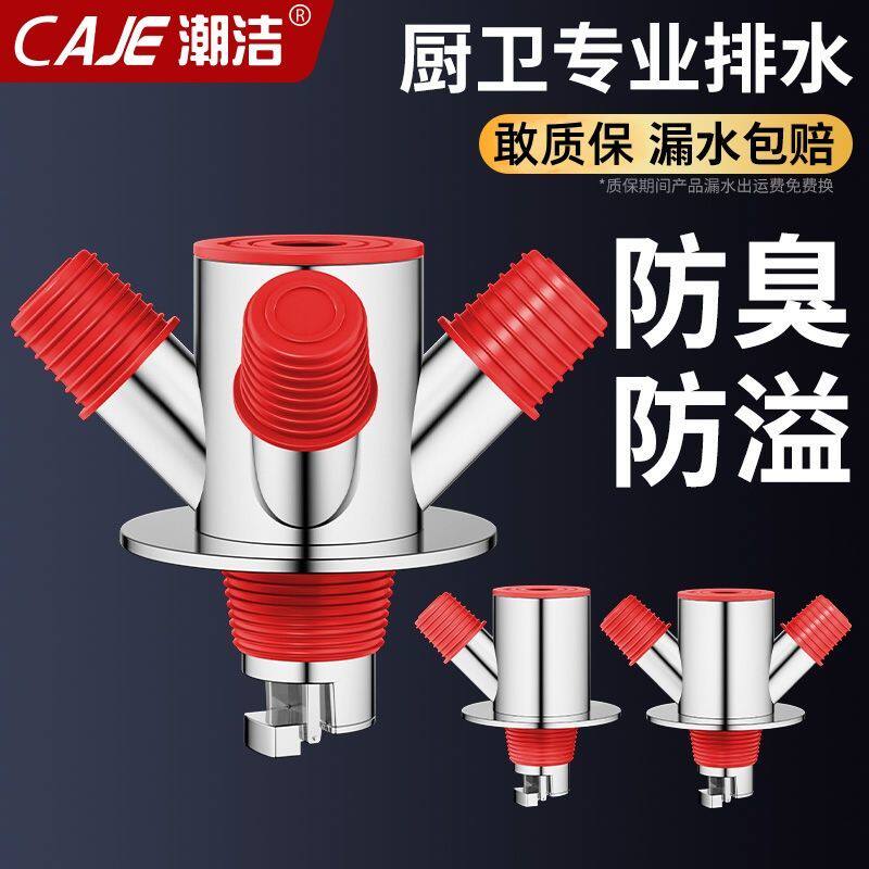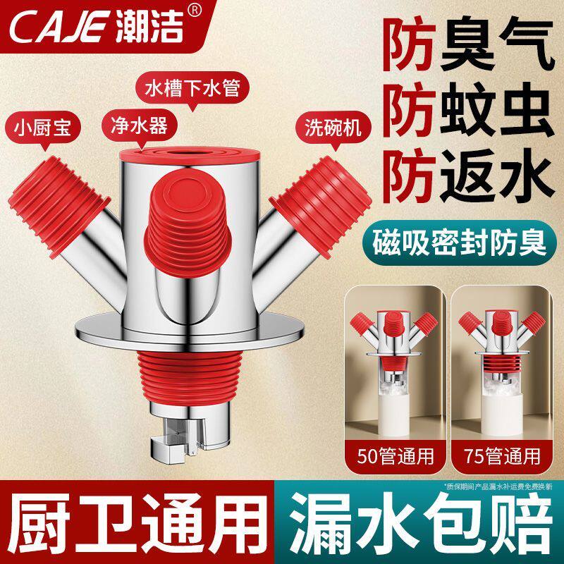 潮洁洗衣机地漏专用接头排水管防返溢防臭洗衣机地面防虫四通下水