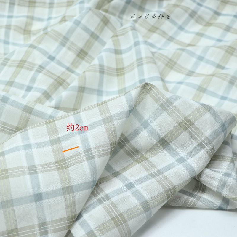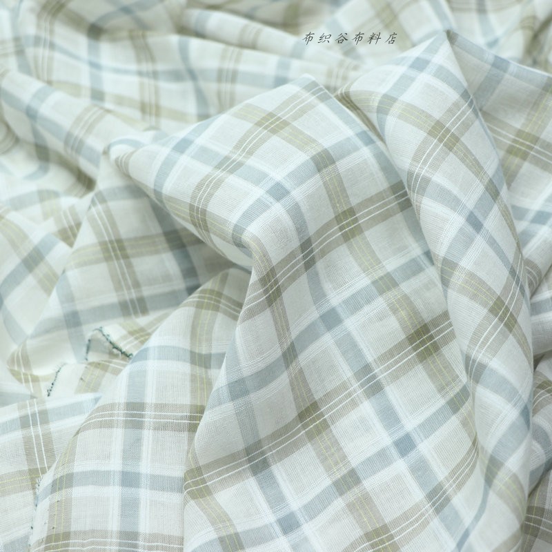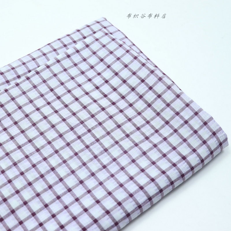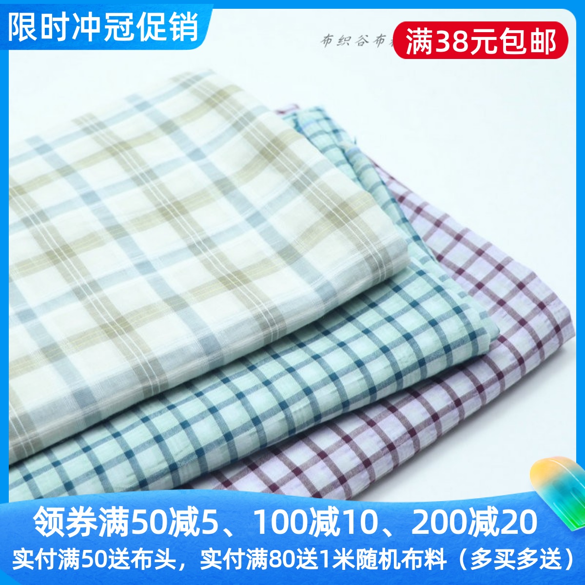 日韩文艺绿紫色织格子半透薄纯棉布料夏季衬衫连衣裙服装童装面料