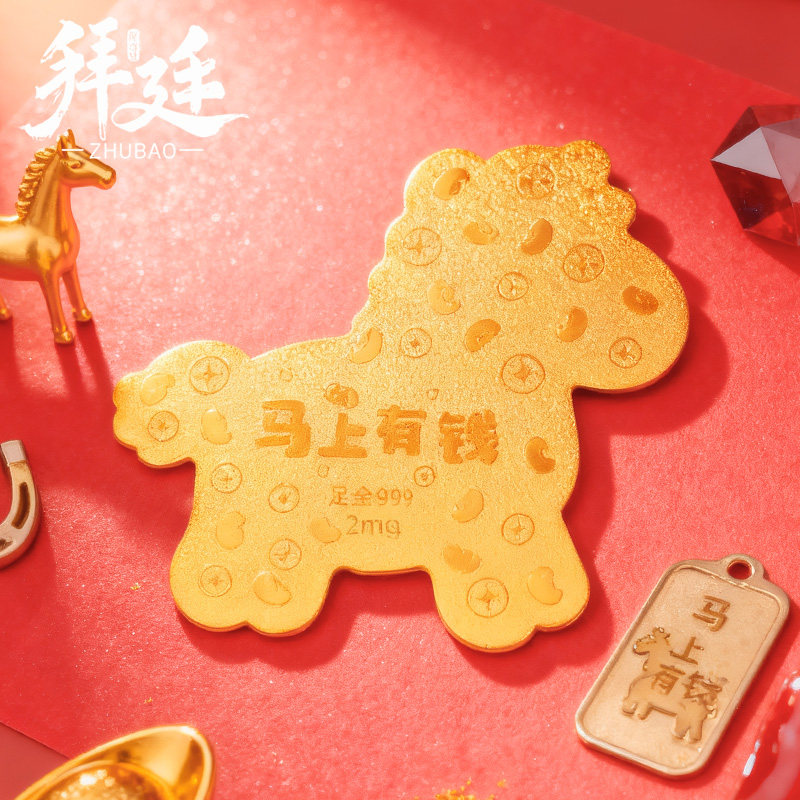 马上有钱黄金手机贴招财黄金片足金999男女手机装饰创意生日礼物