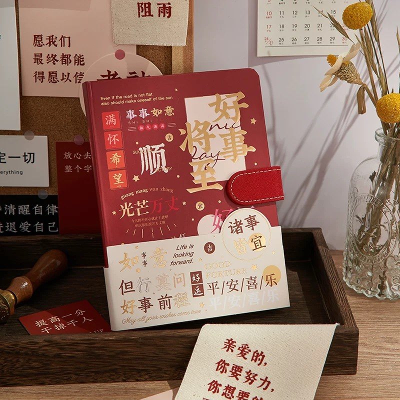 磁扣本简约文艺学生笔记本彩页手账本子复记事本励志文字毕业礼物