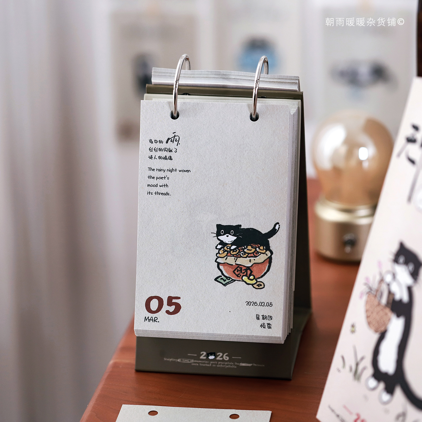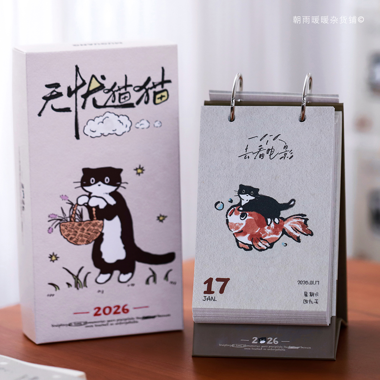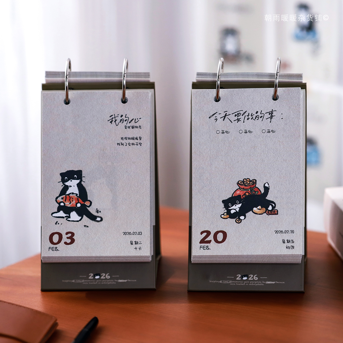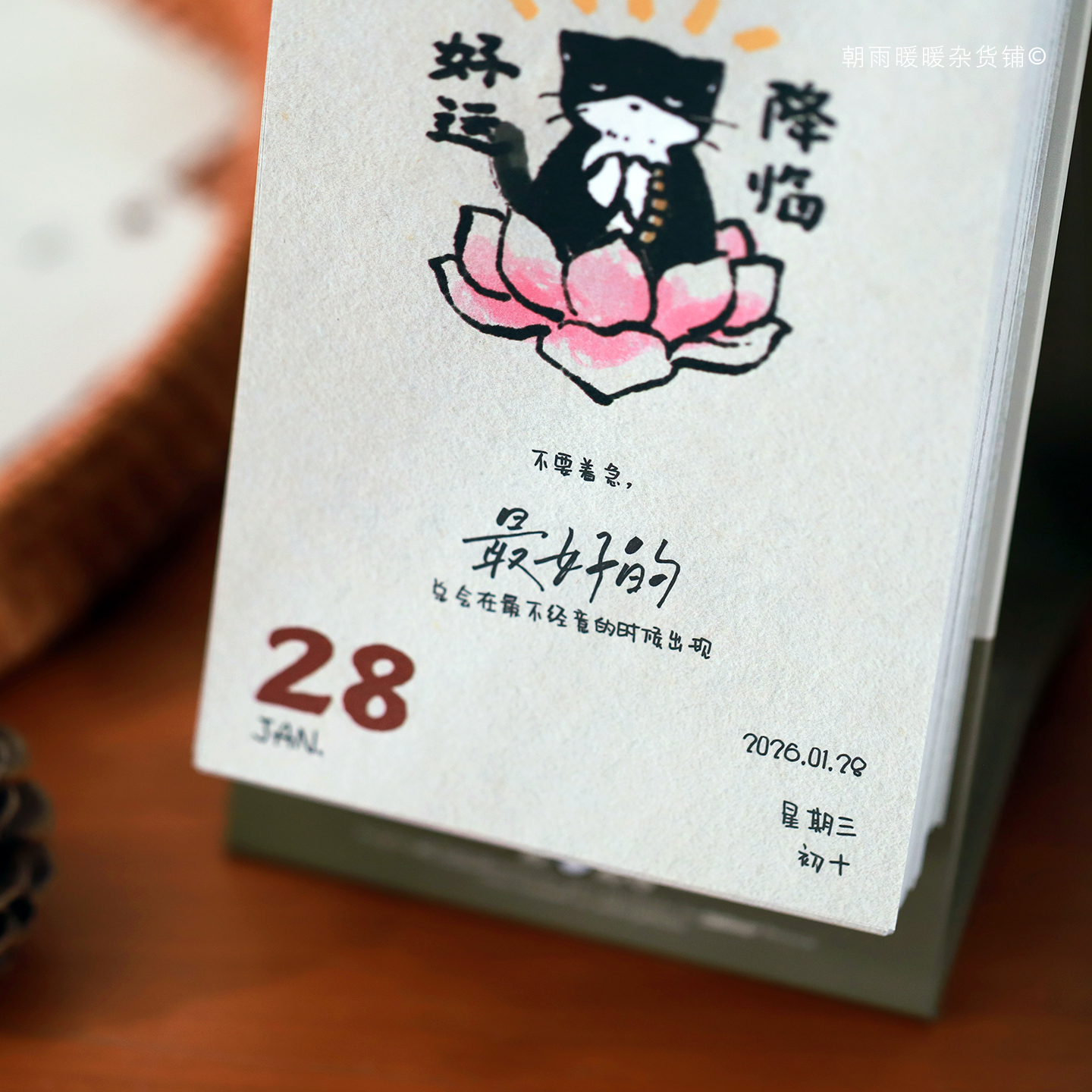无忧猫咪日历2026年新款高颜值治愈手绘插画趣味励志打卡马年台历