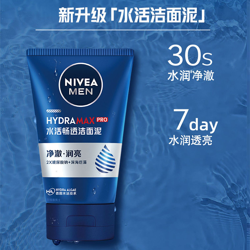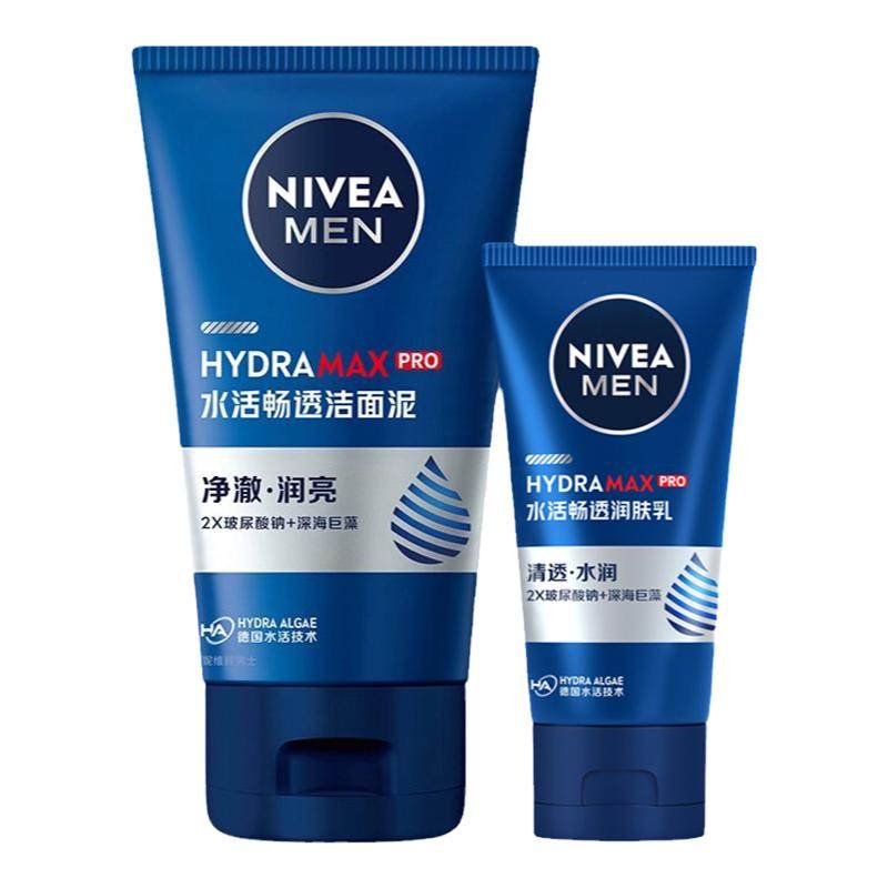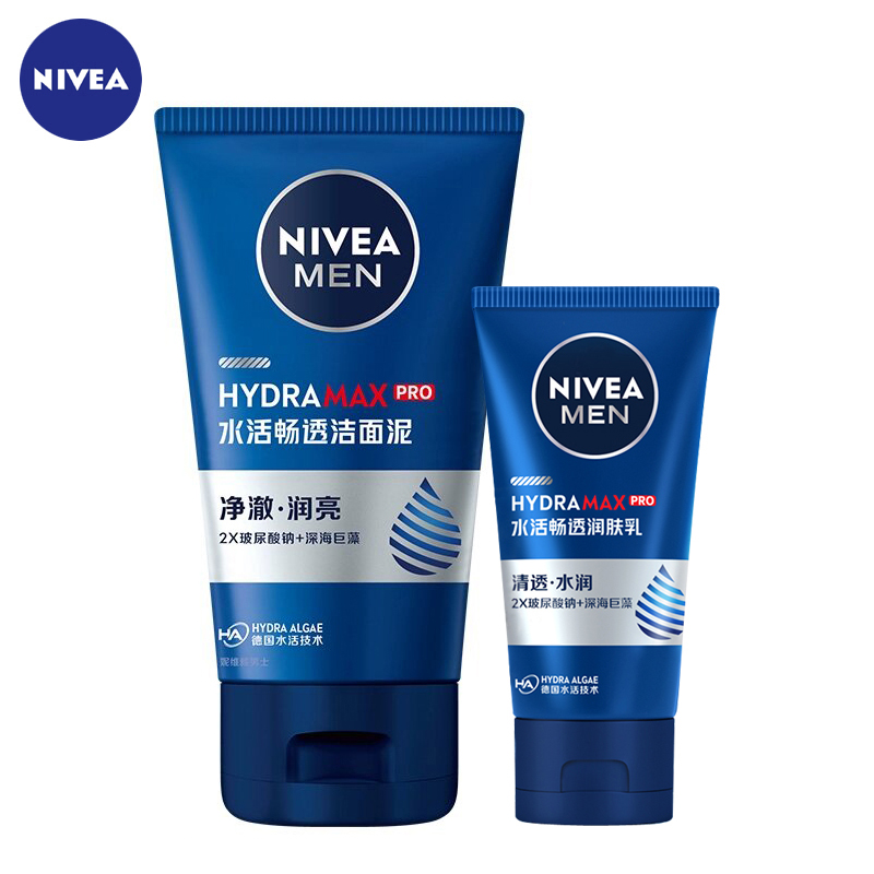妮维雅男士套装水活畅透洁面泥+润肤乳清透保湿补水乳液洗面奶