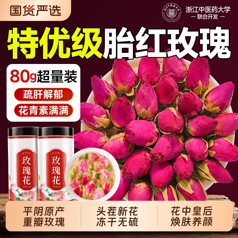 平阴玫瑰花茶疏肝解郁大朵冻干重瓣玫瑰墨红泡水喝官方旗舰店正品