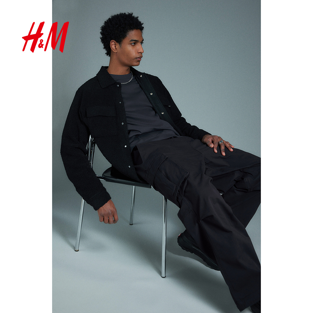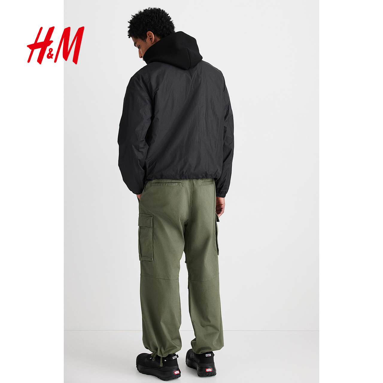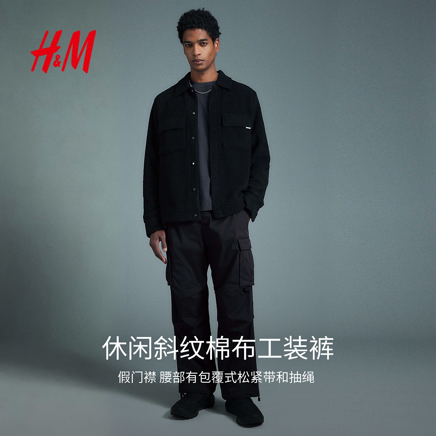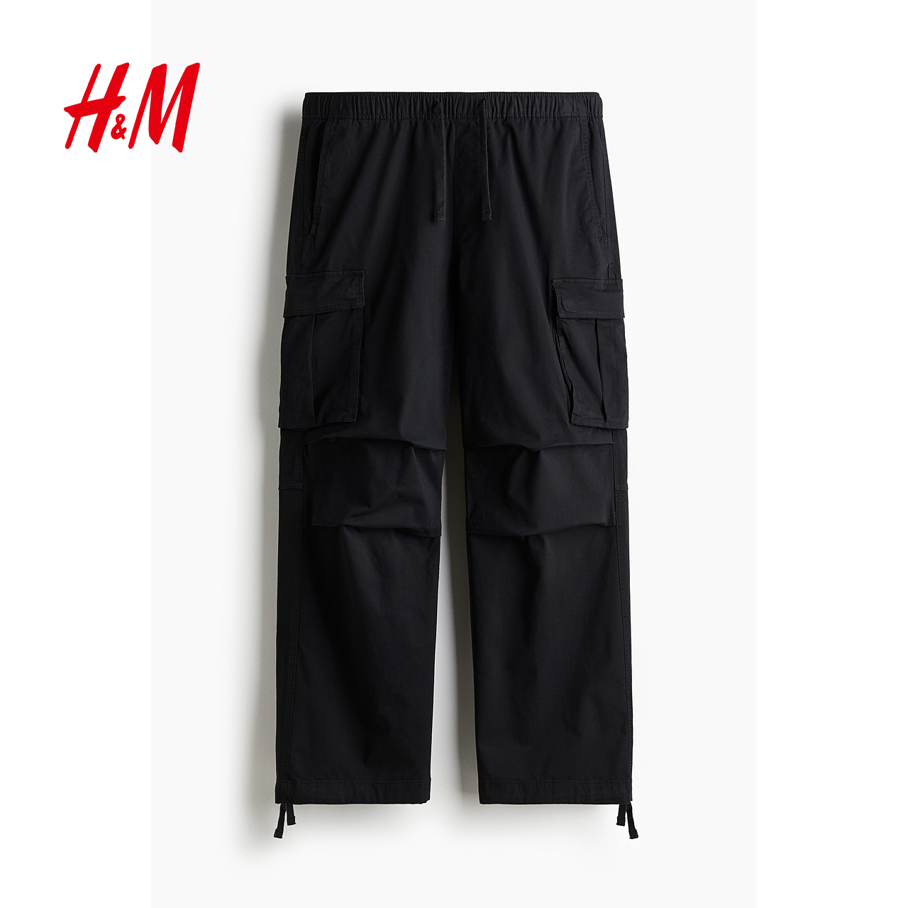 HM男装休闲裤秋季棉质中腰松紧腰直筒版通勤长裤工装裤1228206