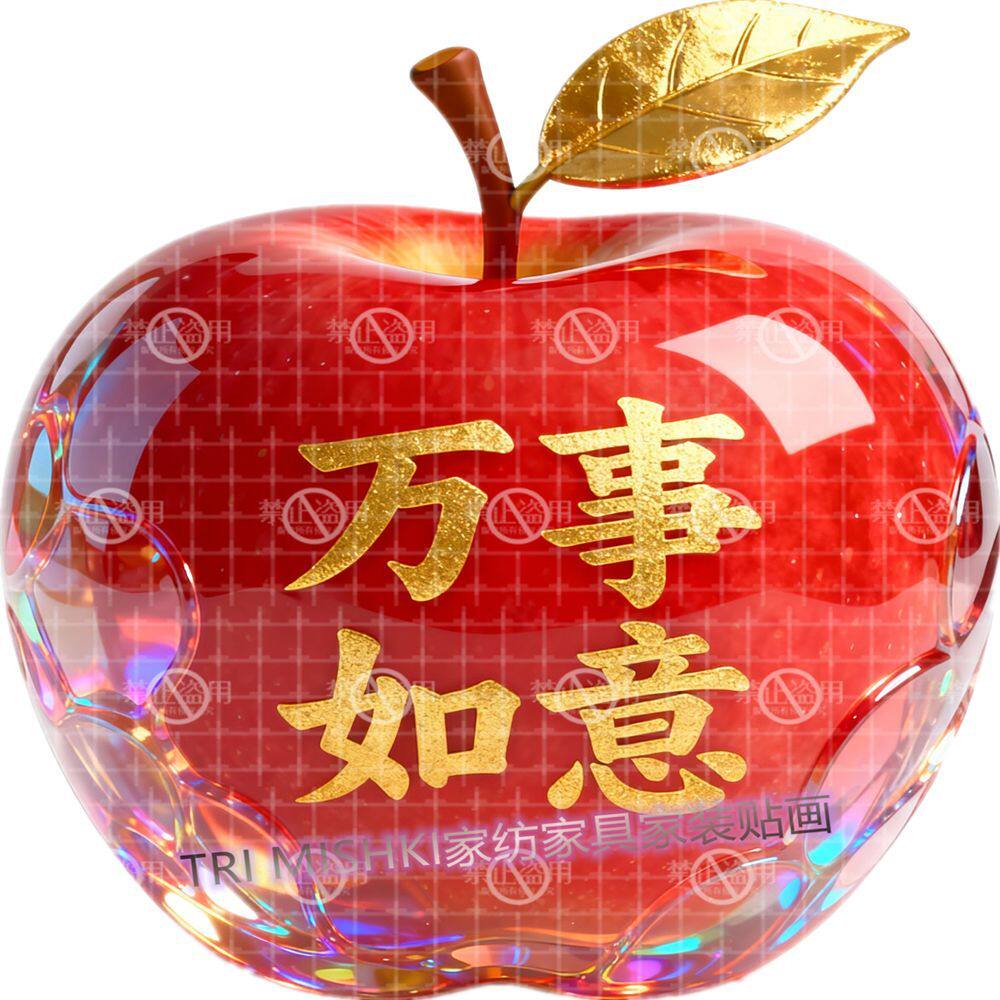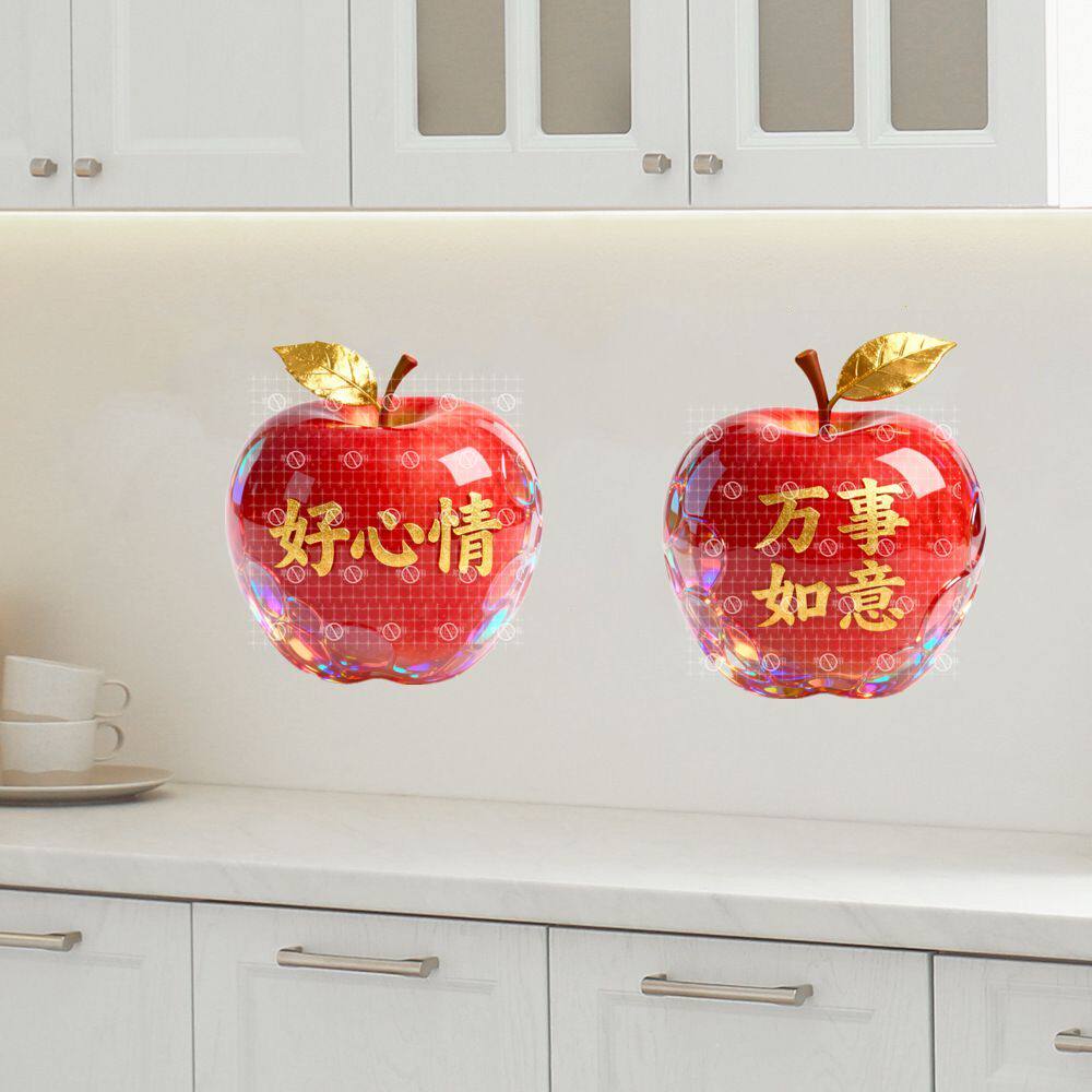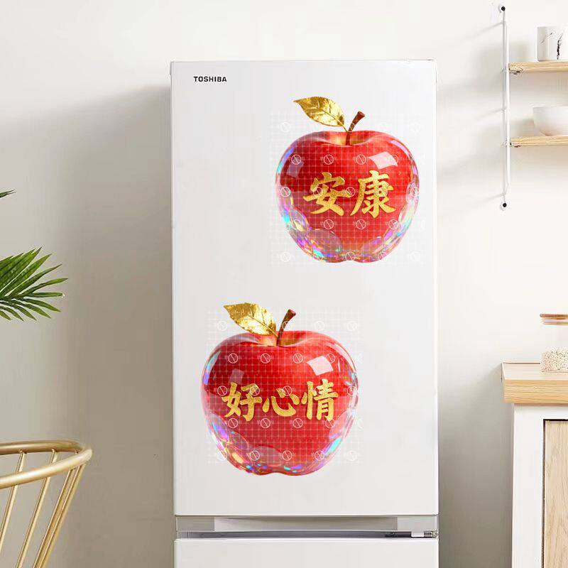 万事如意平安果贴纸防水厨房贴画遮丑苹果贴画自粘冰箱贴瓷砖墙贴