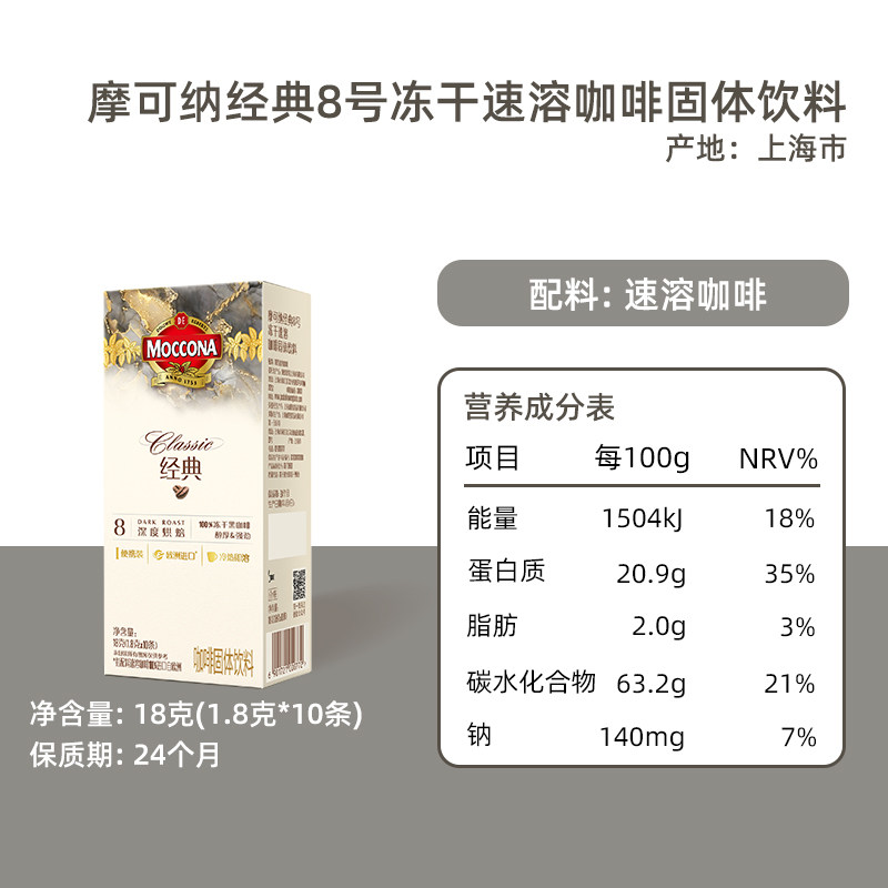 摩可纳经典8号深度烘焙冻干速溶黑咖啡1.8g*10条盒装提神早餐饮品