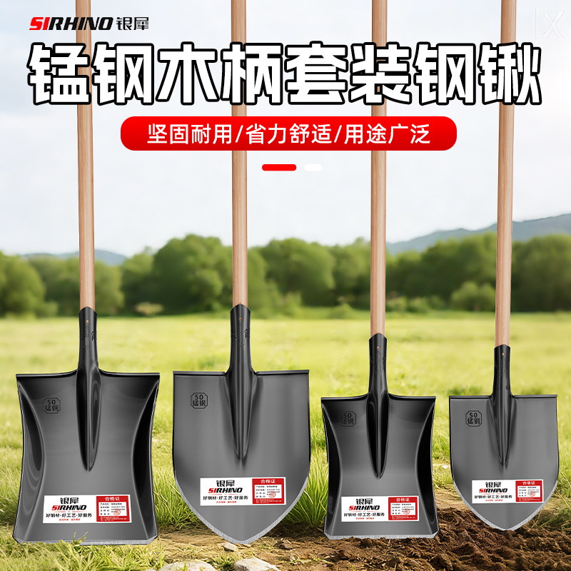 加厚锰钢铁锹铲子挖土家用平铲铁铲工具大全铁锨洋铲掀工地除雪锹