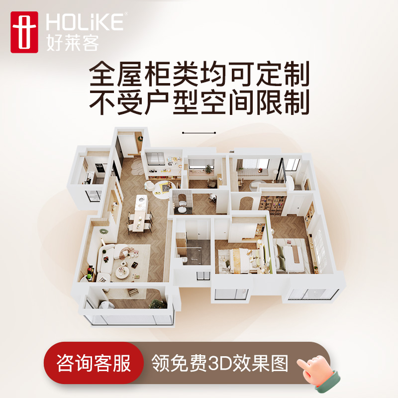 好莱客【轻定制套餐5㎡全屋定制】卧室衣柜衣帽间电视餐边柜