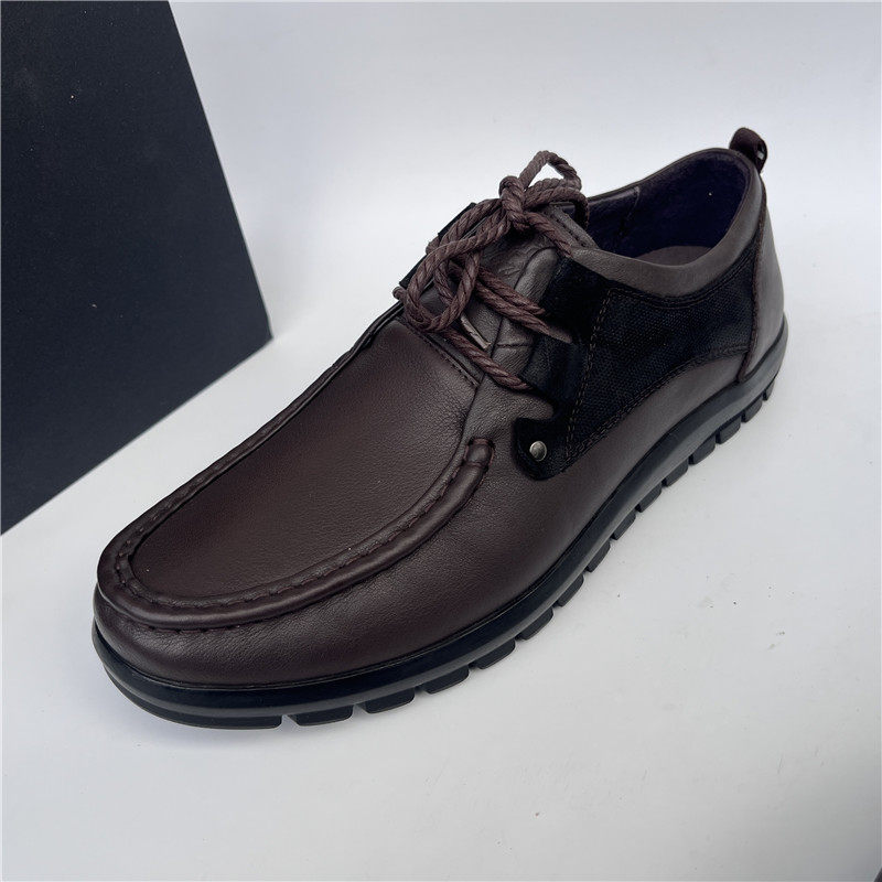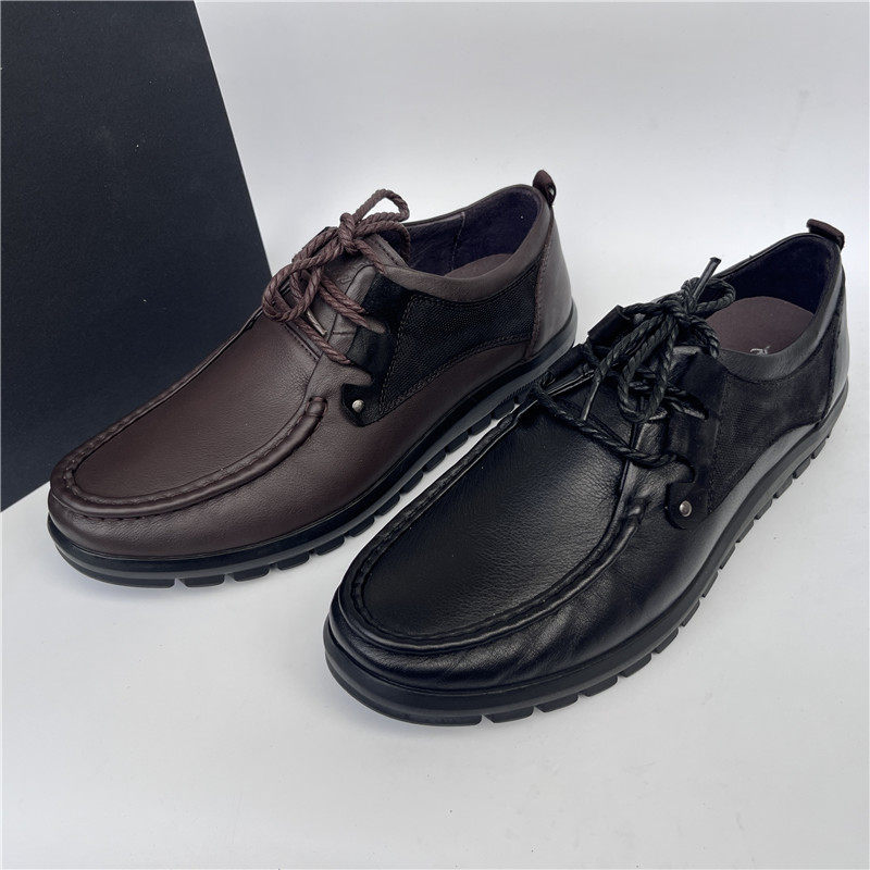 宝罗丝丹 春秋低帮真皮流行男鞋全牛皮系带休闲软底百搭男士皮鞋