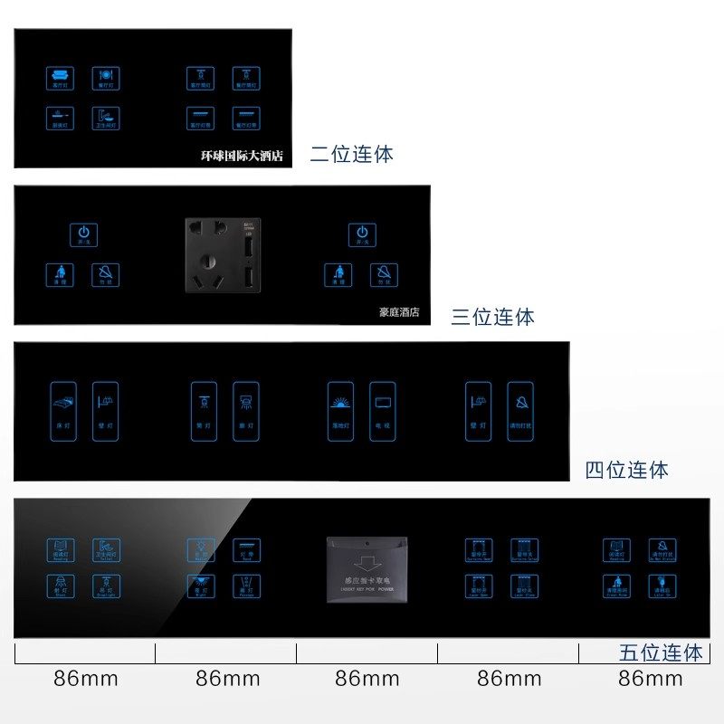 触摸强电220V零火线连体开关面板床头RCU干接点12V酒店触控
