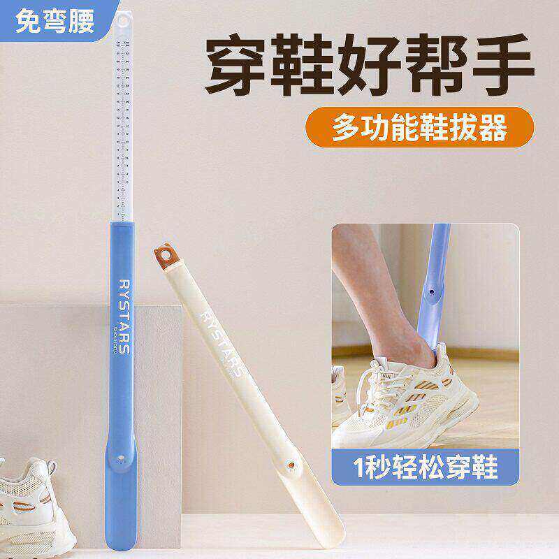 二合一可伸缩鞋拔子免弯腰长柄家用高档老人孕妇儿童量脚器提鞋