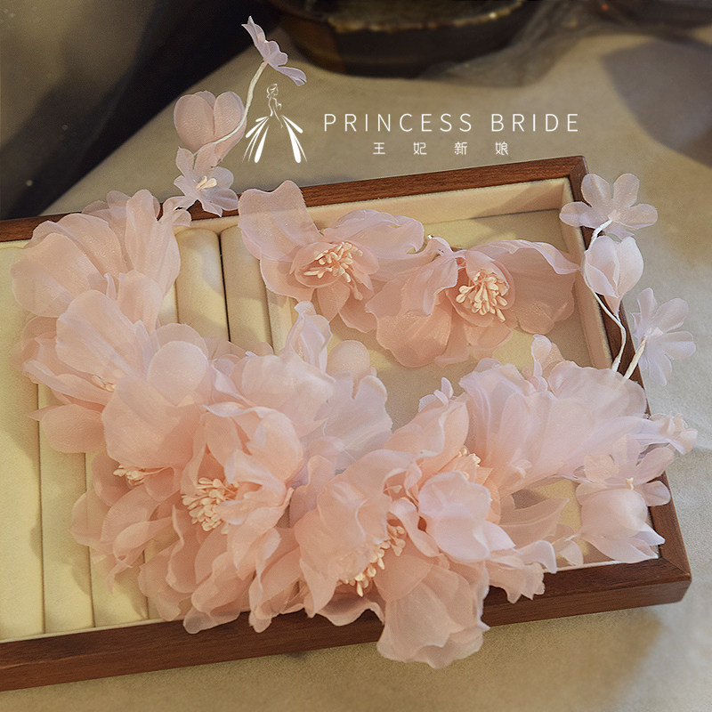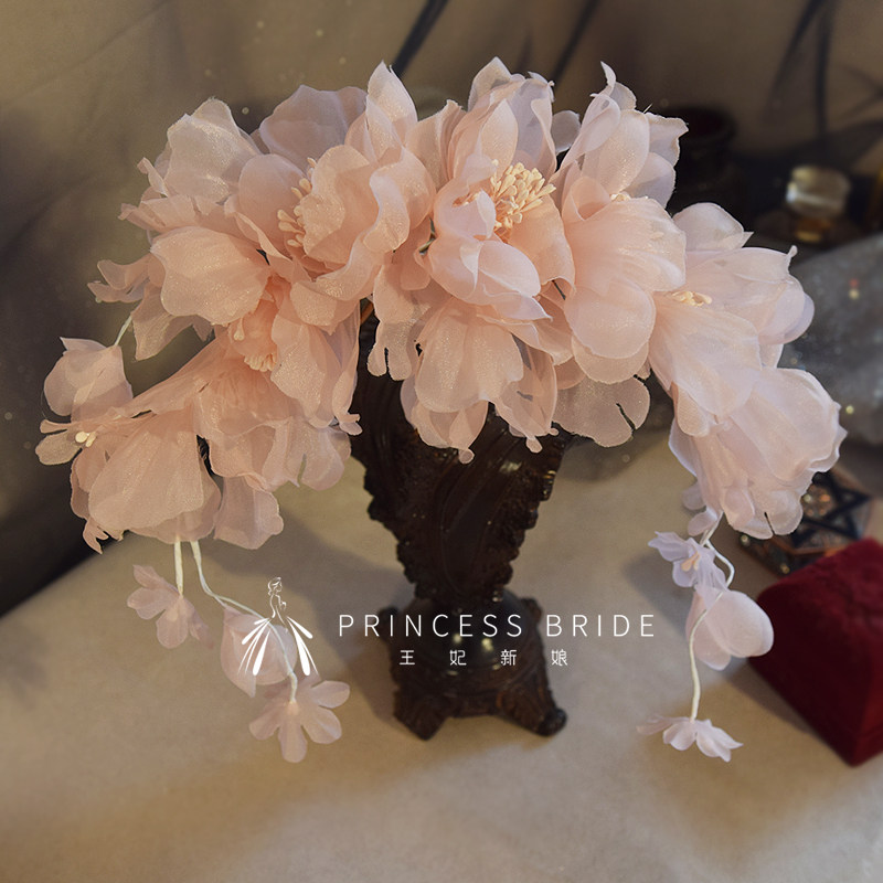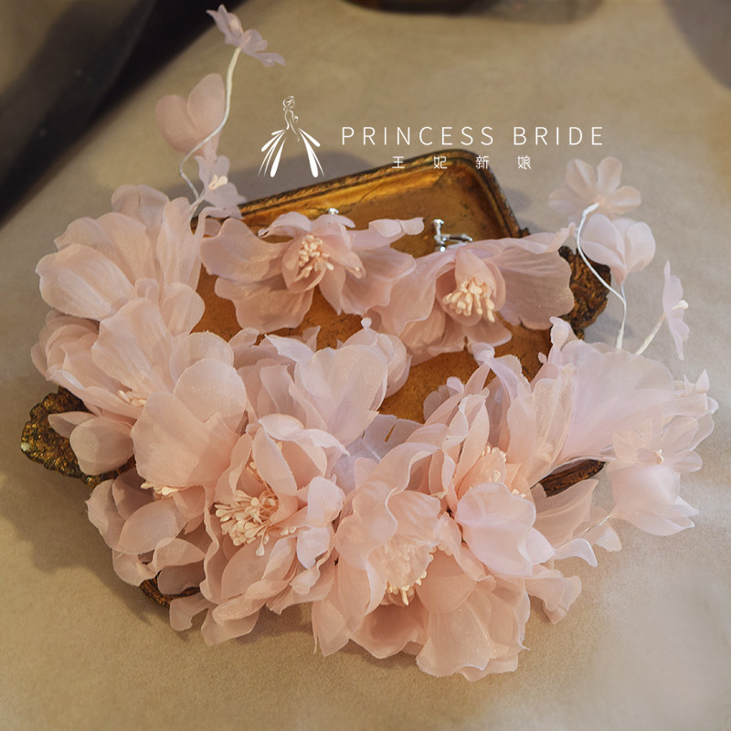 王妃新品2025优雅淡粉色头饰盘发造型礼服白纱结婚拍照写真头饰品