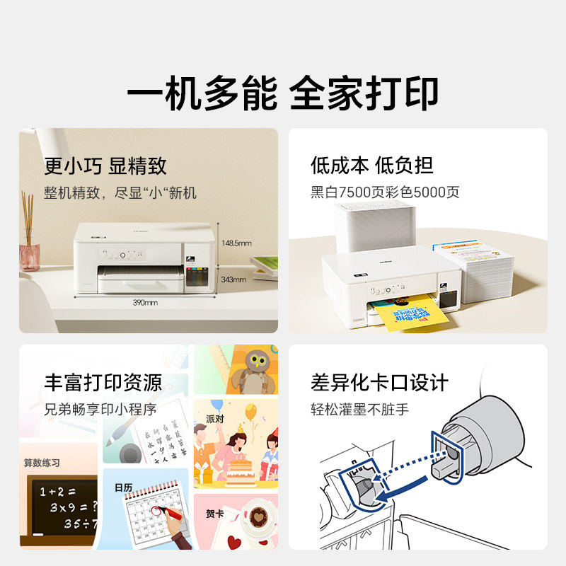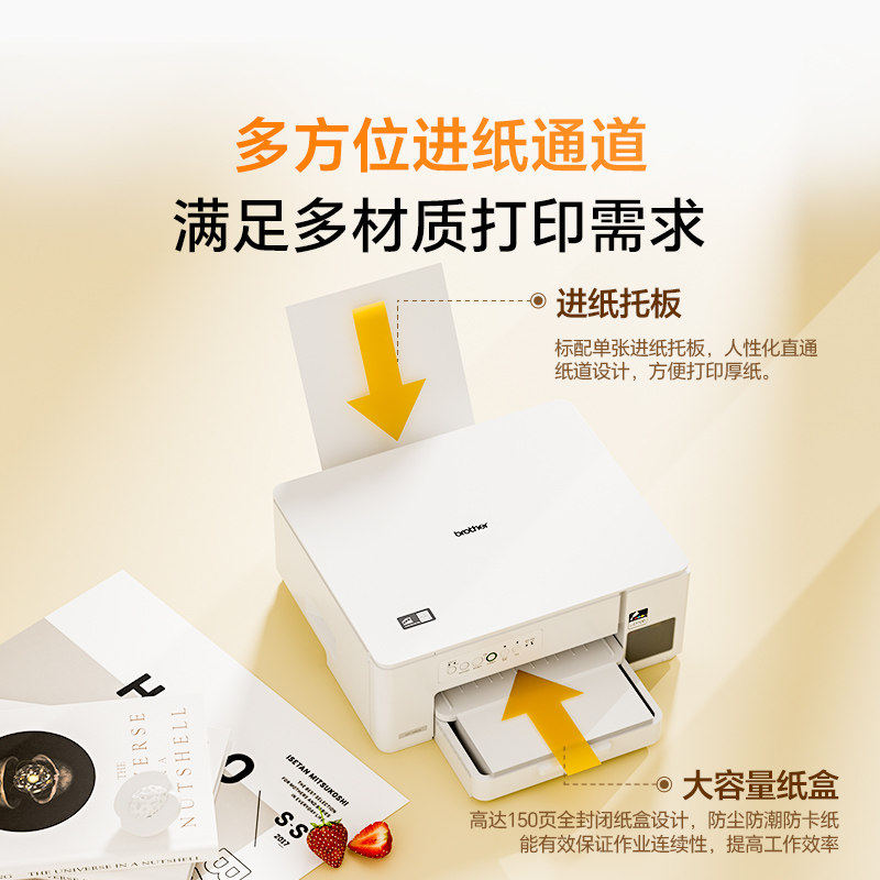 兄弟DCP-T436W/236/226彩打印机家用小型喷墨A4手机无线wifi远程打印复印扫描多功能一体机内置墨仓