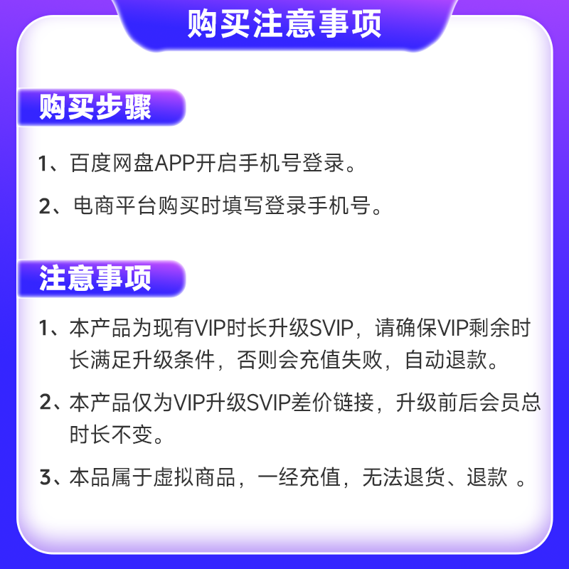 【VIP天数需大于92天 】百度网盘vip升级svip超级会员3个月