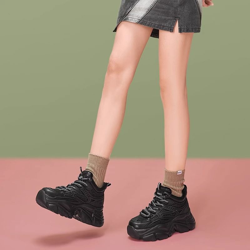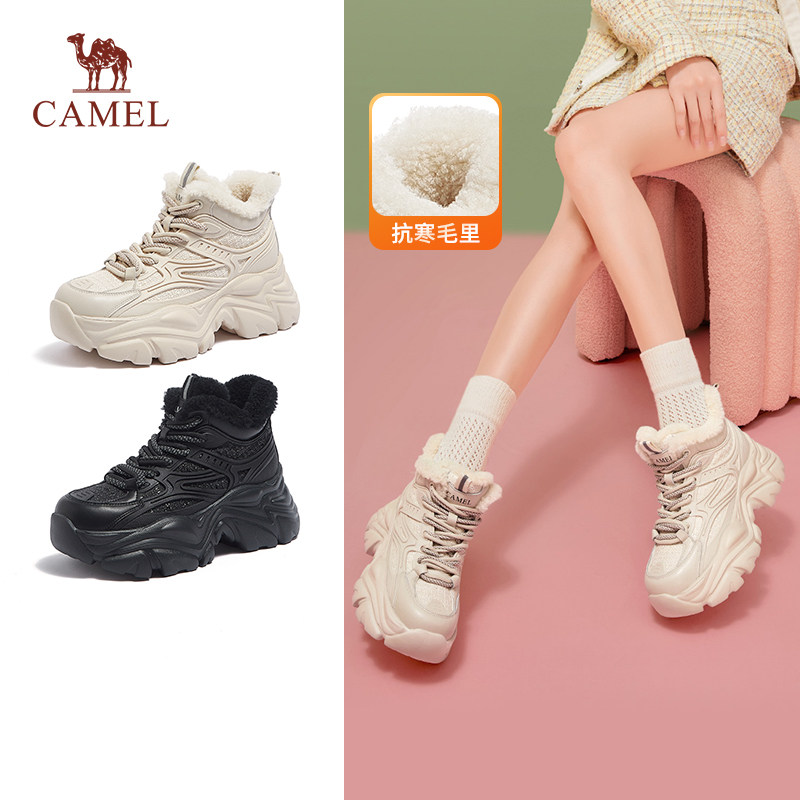 骆驼女鞋2026春季季新款加绒厚底增高休闲运动老爹鞋高帮鞋女款