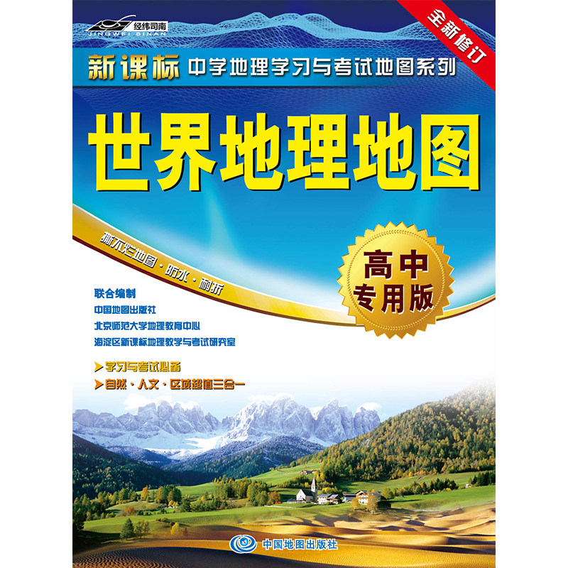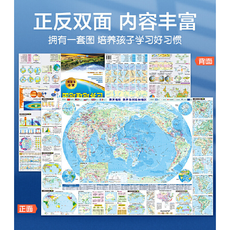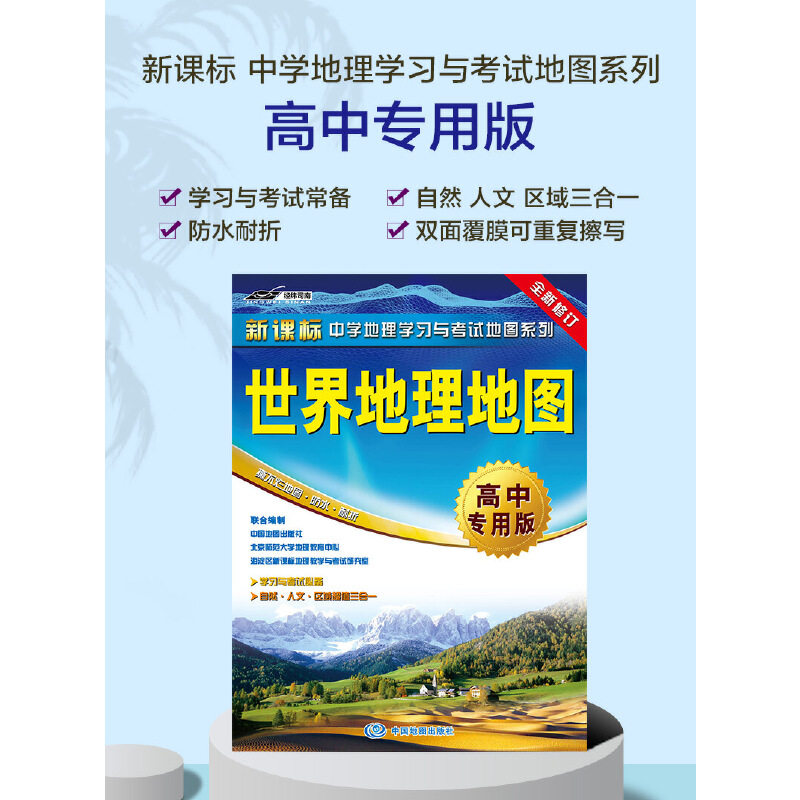 世界地理地图·高中专用版 (地理学习与考试地图 .大幅面世界地形图与世界国家和地区图叠加 高考重点难点区域单元速查速记地图