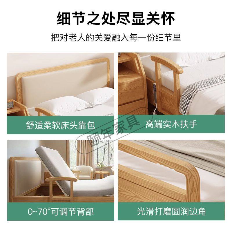 家用老人养老机构电动手摇升降扶手起背腿护栏护理住宅家具实木床