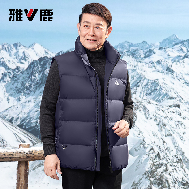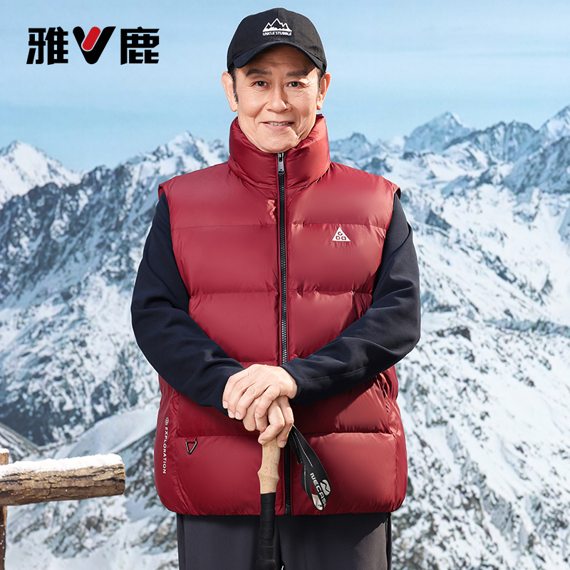 雅鹿冬季立领羽绒马甲爸爸装2025新款外穿加厚休闲中老年保暖背心