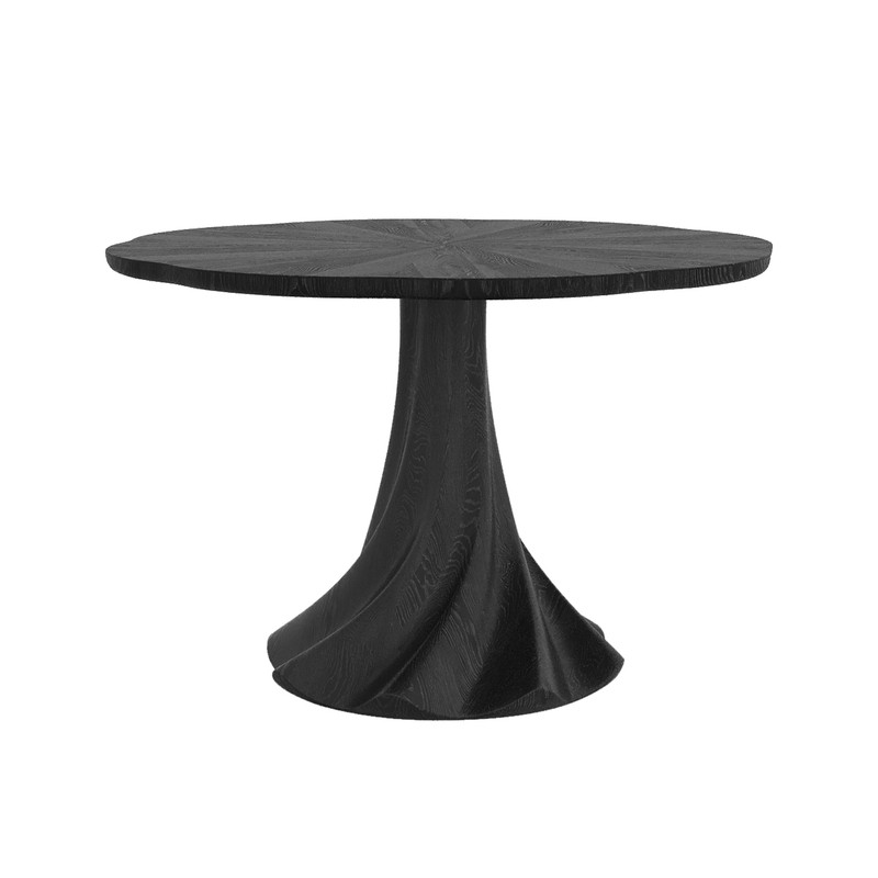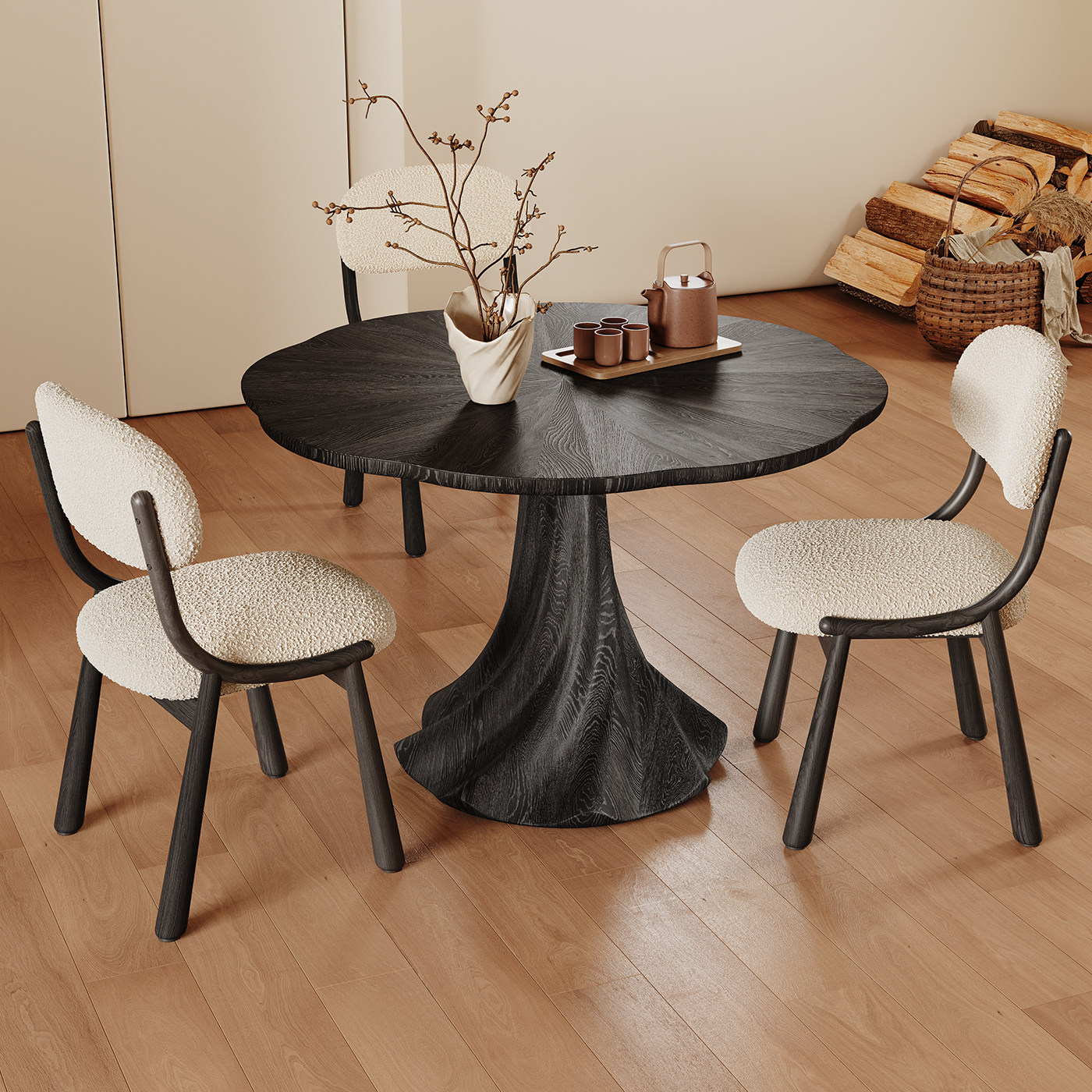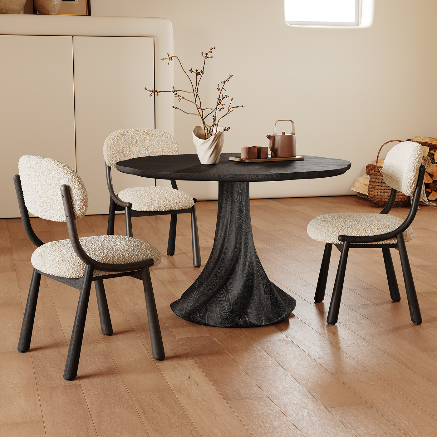 法式复古实木圆桌家用小户型1米洽谈桌现代简约黑色纯实木餐桌
