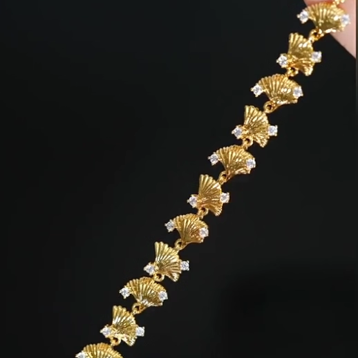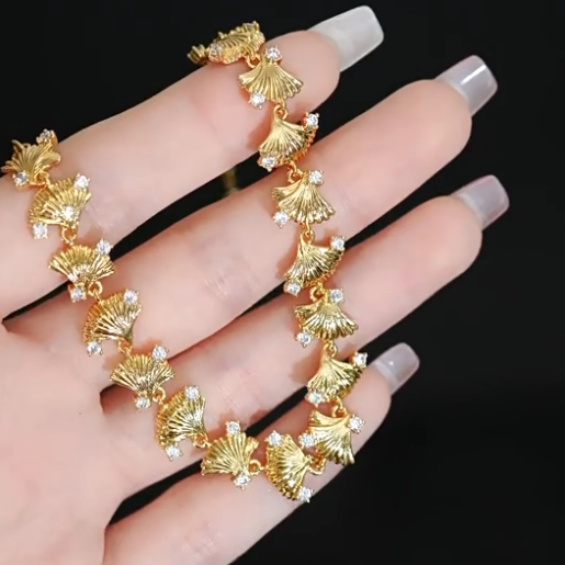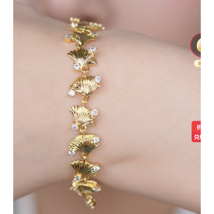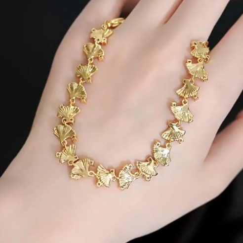 旭平银杏叶仿黄金色扇形手链女复古新中式气质小众高级感手饰