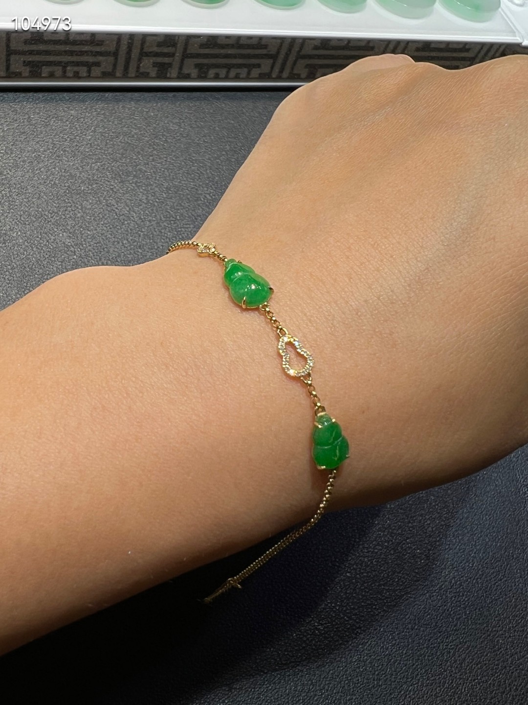18k金钻石镶嵌冰种阳绿翡翠葫芦手链手串精品百搭天然缅甸A货证书