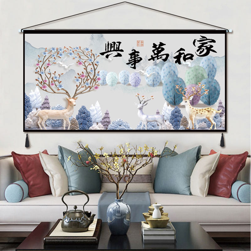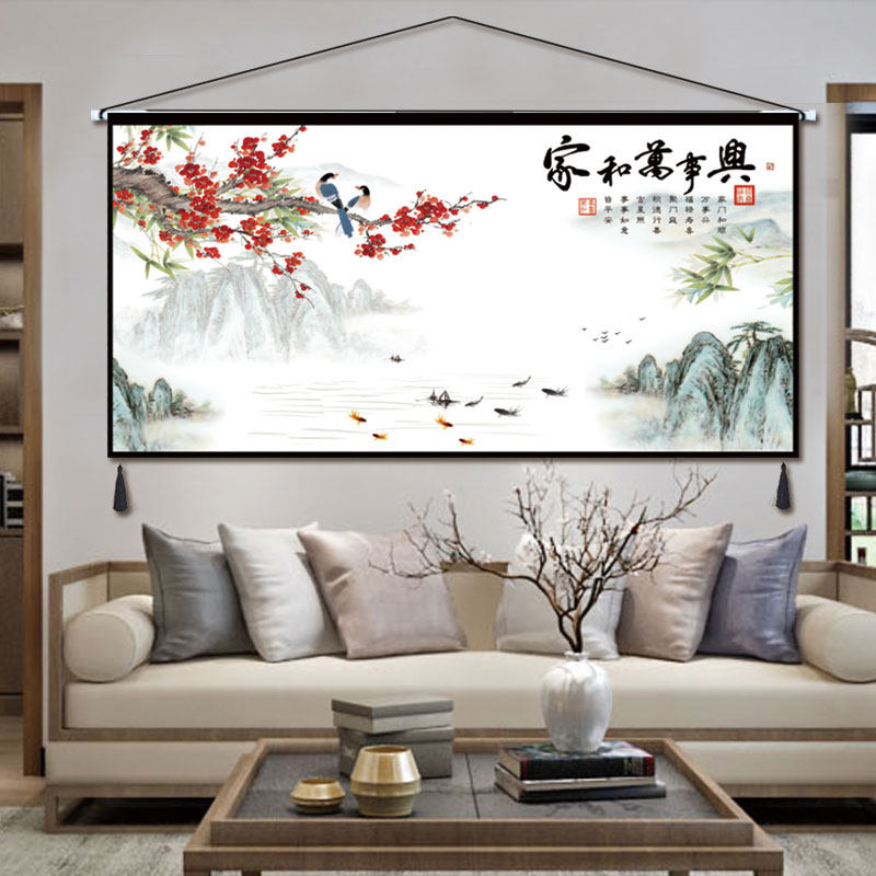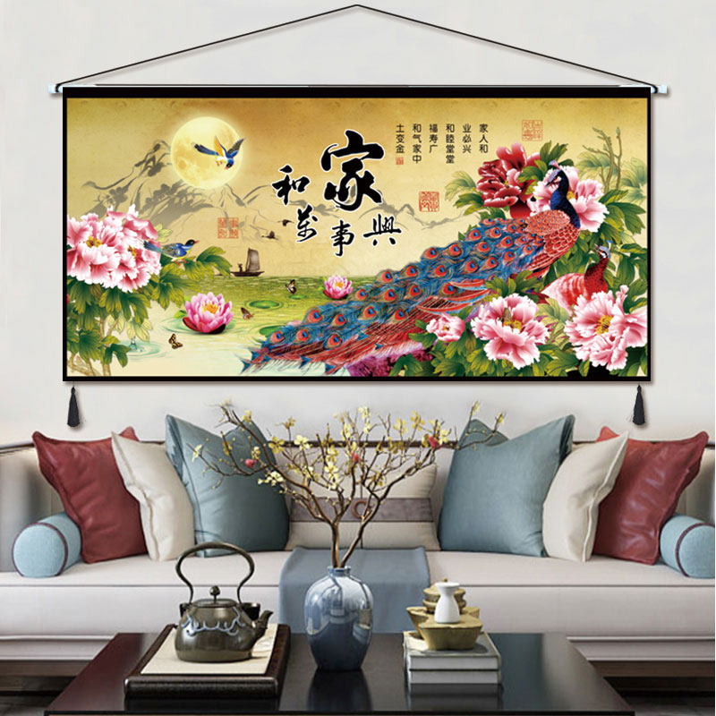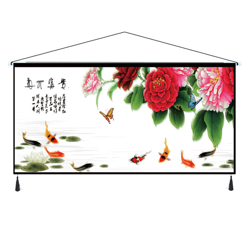 中式挂画布艺牡丹家和万事兴挂毯客厅卧室装饰画挂布横版墙画布画
