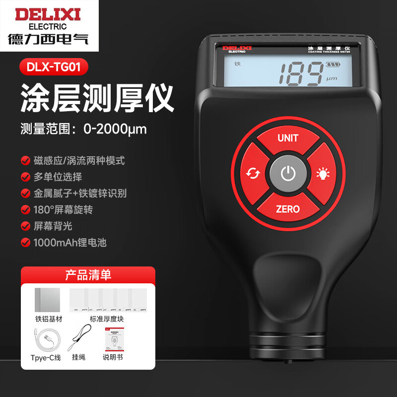 德力西涂层测厚仪DLX-TG01高精度漆膜厚度测量仪0-2000μm漆膜仪