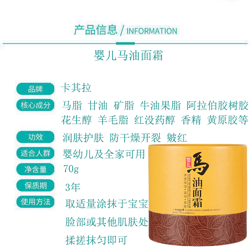 卡其拉婴儿马油面霜 新生儿童偏油秋冬护肤 宝宝防皴红脸干燥裂