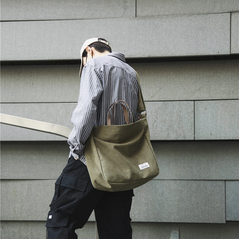 斜挎包男日系文艺风大学生帆布包休闲手提包大容量慵懒风单肩包