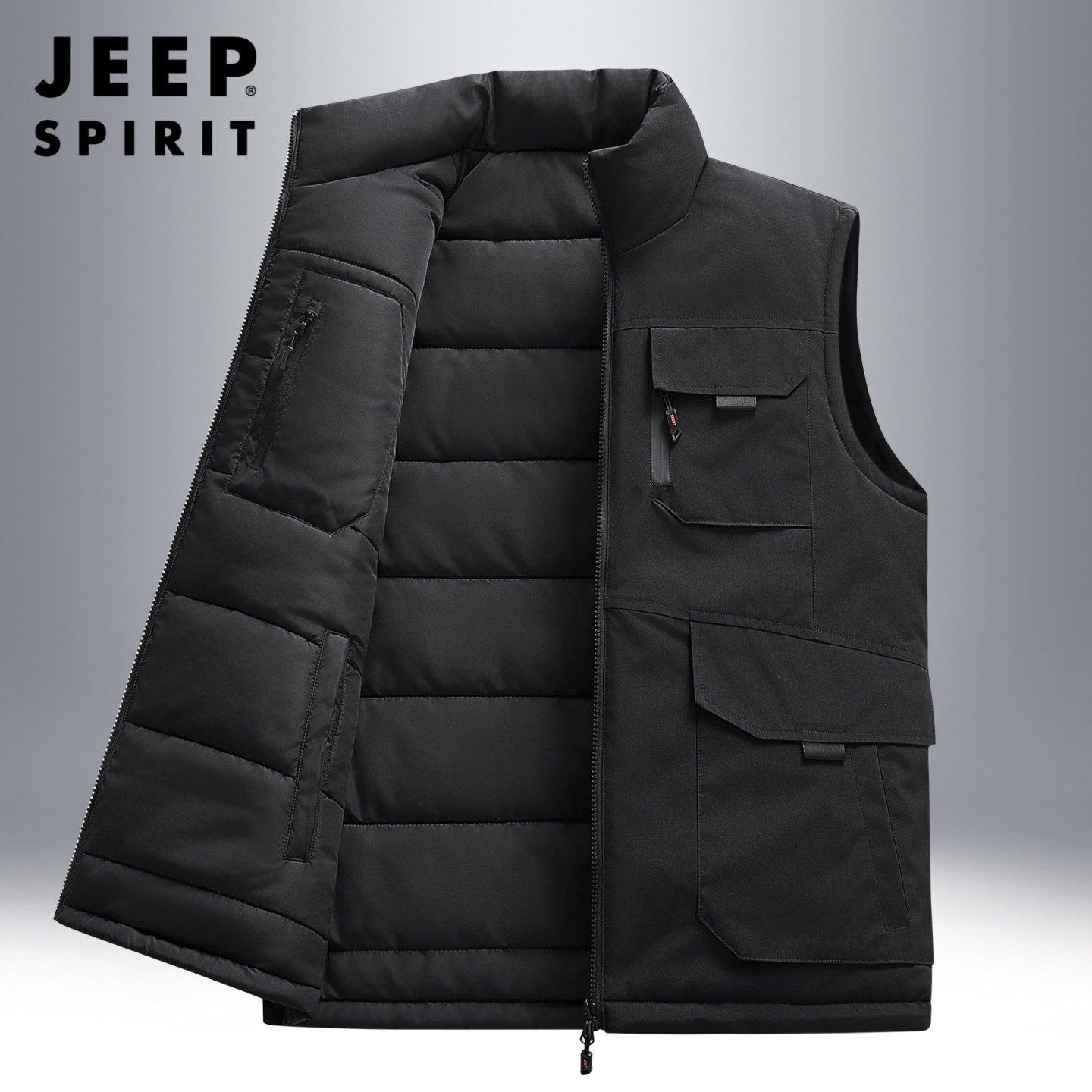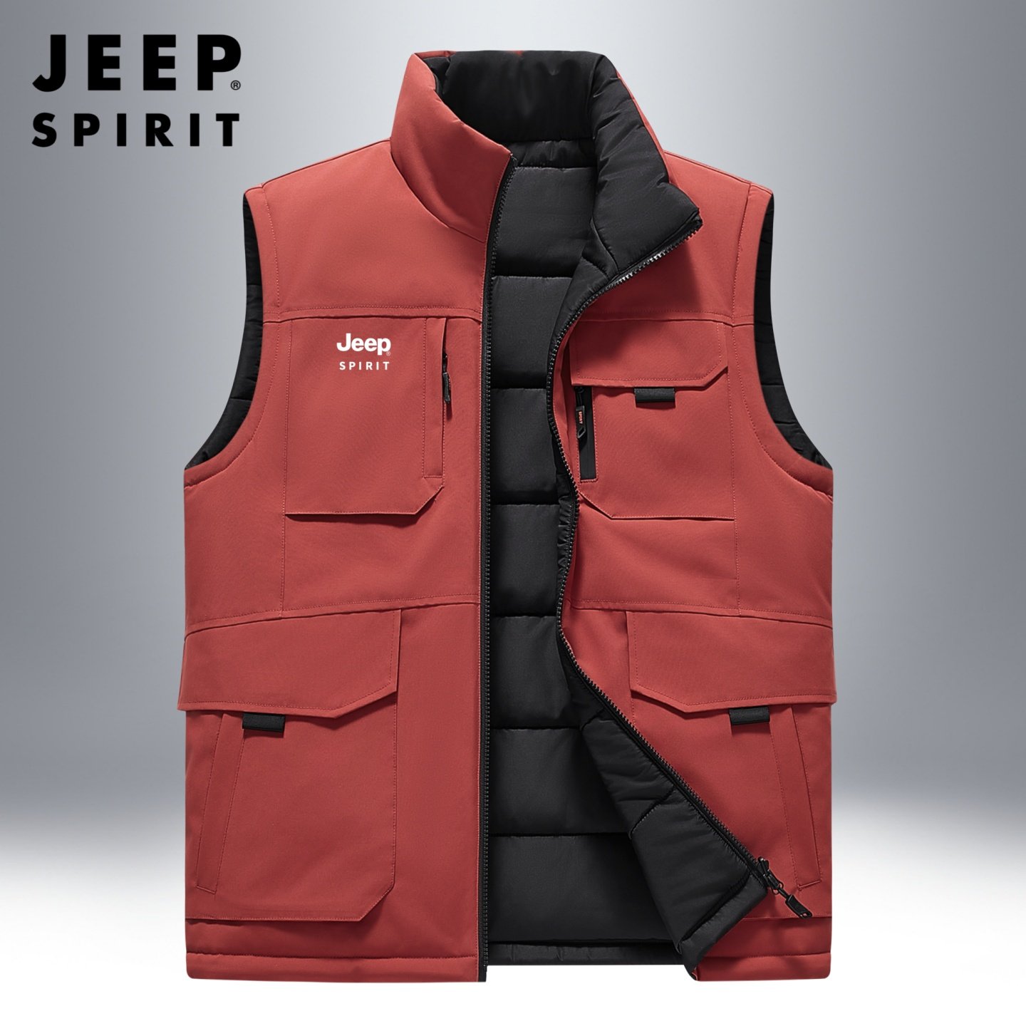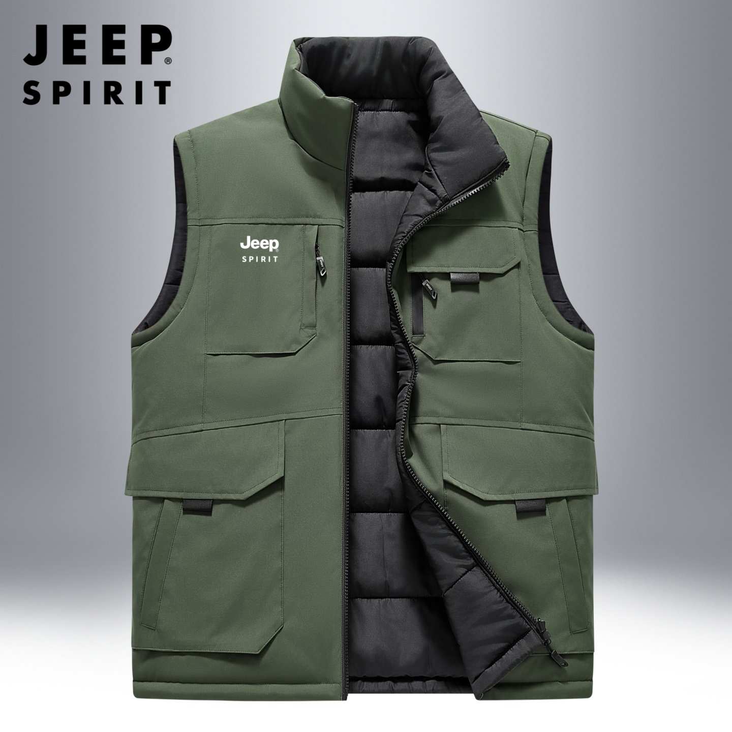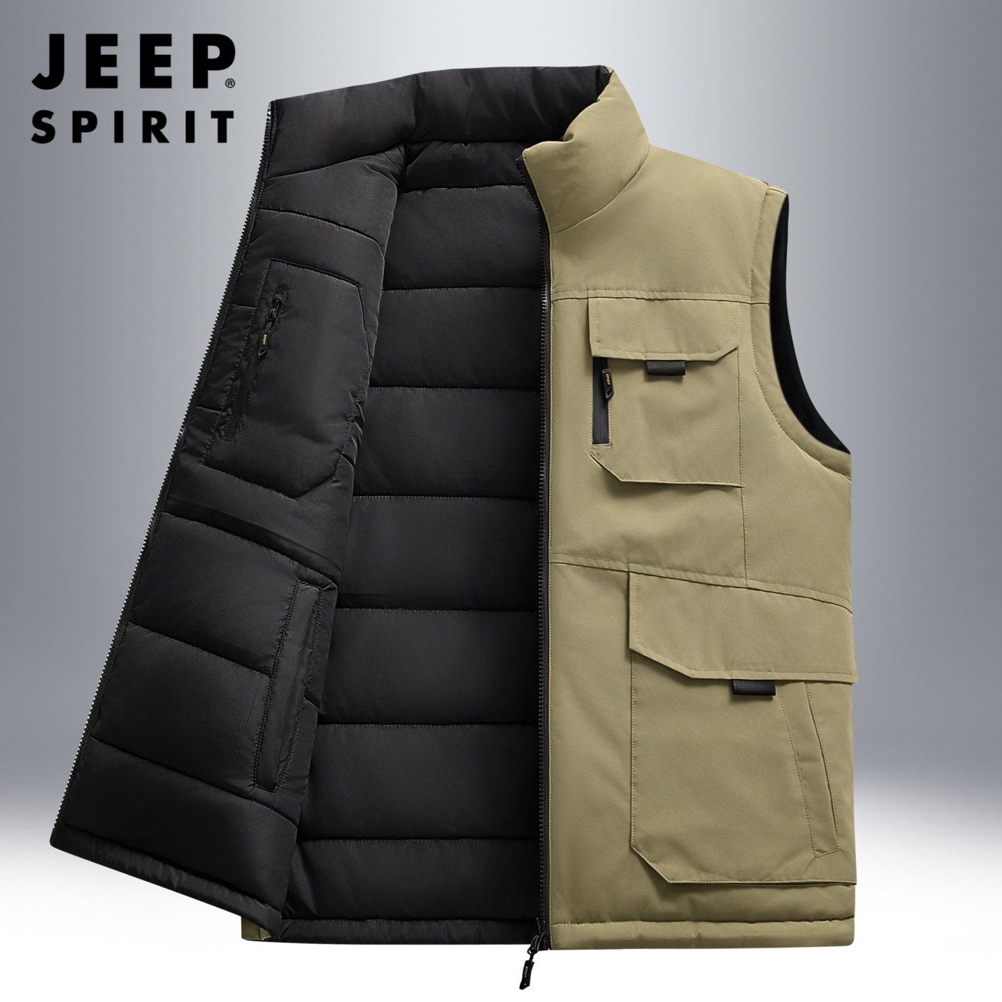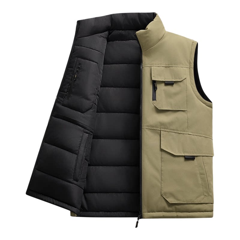 吉普双面穿马甲男冬季防寒保暖户外工装坎肩马夹外穿加棉保暖背心