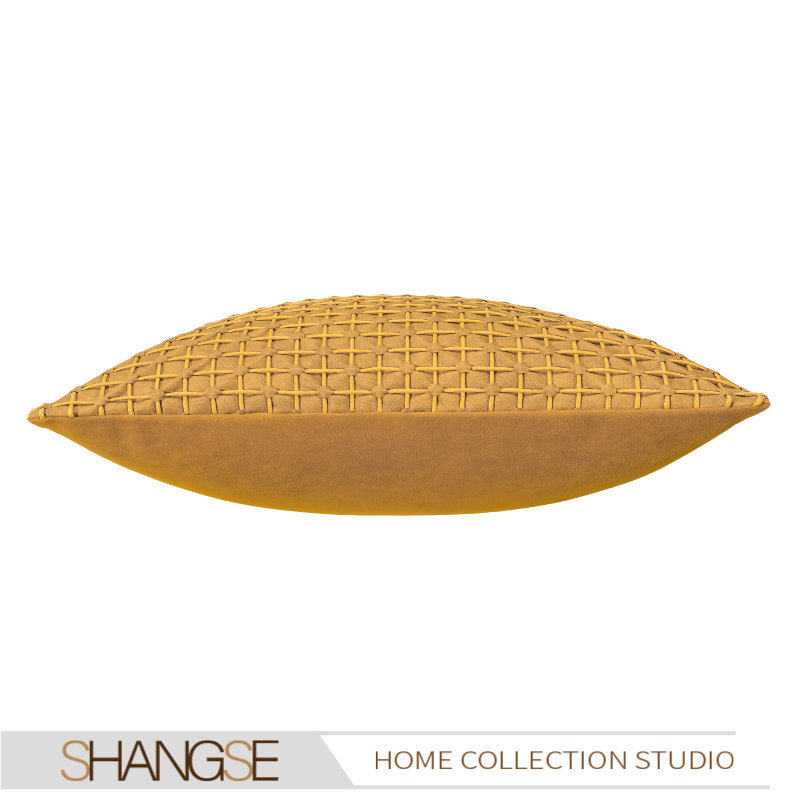 尚塞布艺样板房抱枕售楼部居家黄色几何线条格纹现代家居方枕腰枕