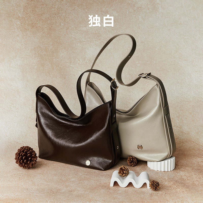 独白 云游系列托特包大容量通勤油蜡皮质感斜挎女包D4515