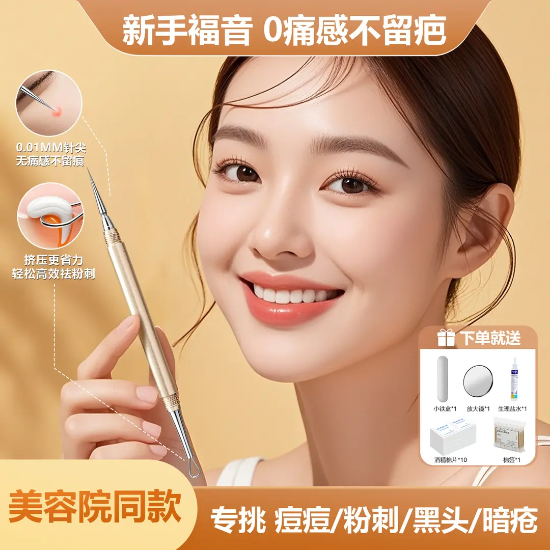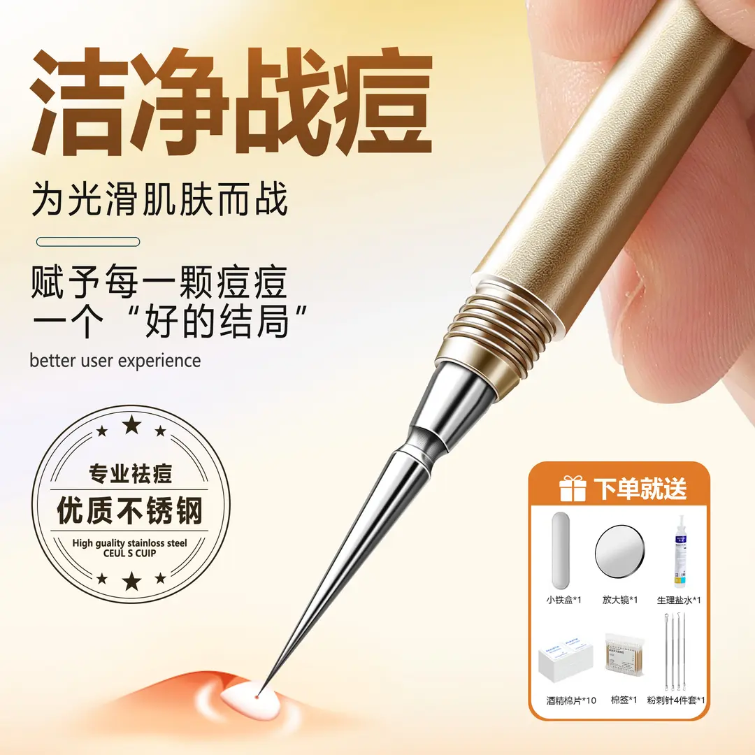 精密超尖细扭盖粉刺针黑头针美容院专用挤痘痘套装工具闭口暗疮针