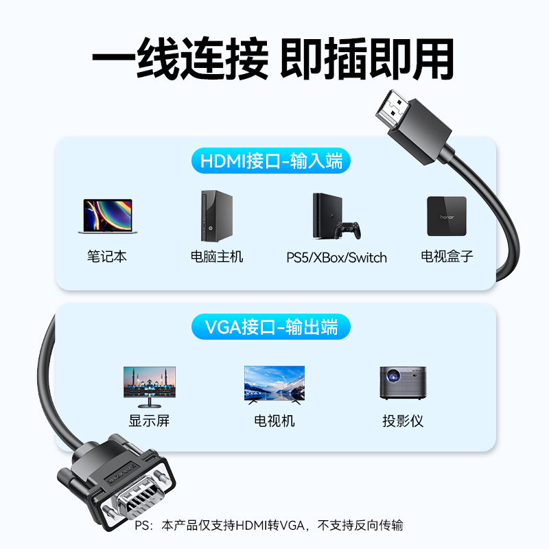 山泽hdmi转vga线高清连接台式笔记本电脑显示屏转换器头视频转接