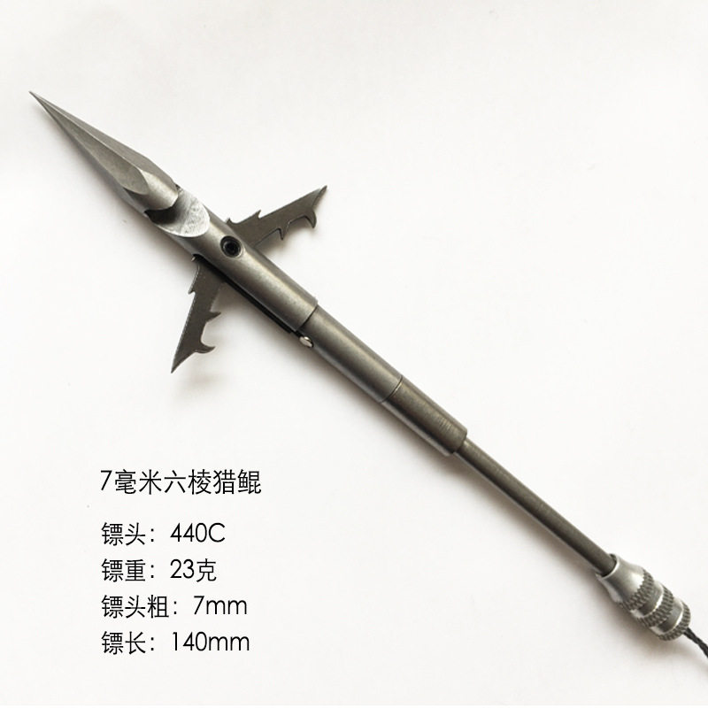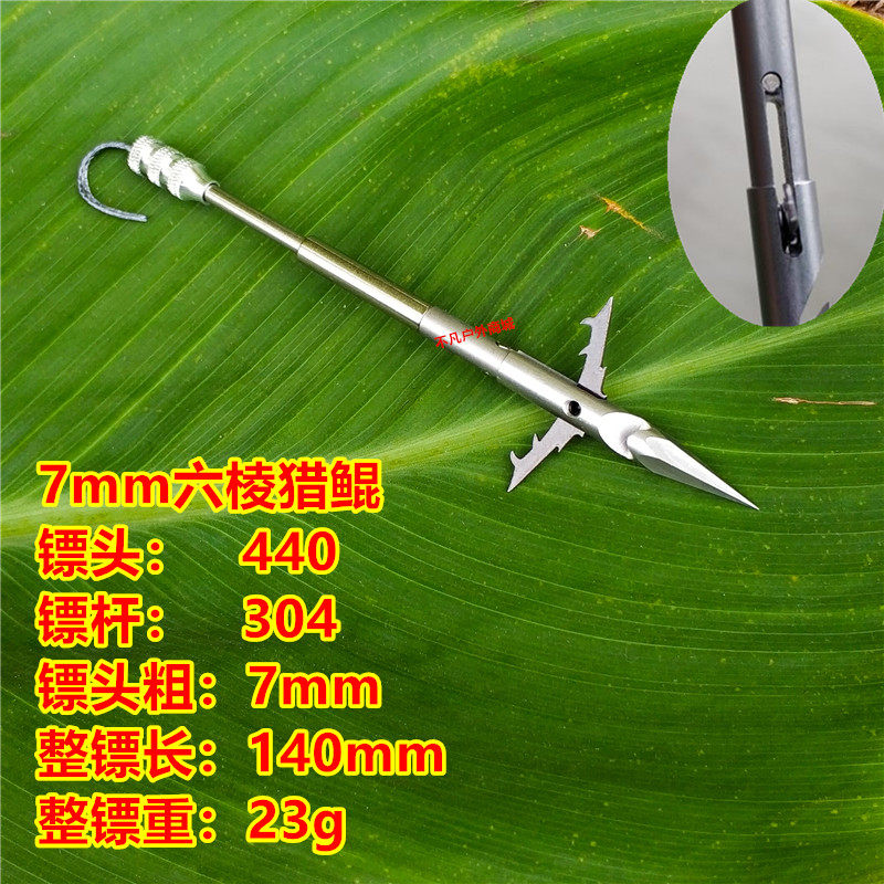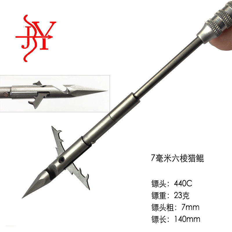 新款7mm六棱鱼镖23克弹弓射鱼打鱼440不锈钢后置倒刺破甲深水猎鲲