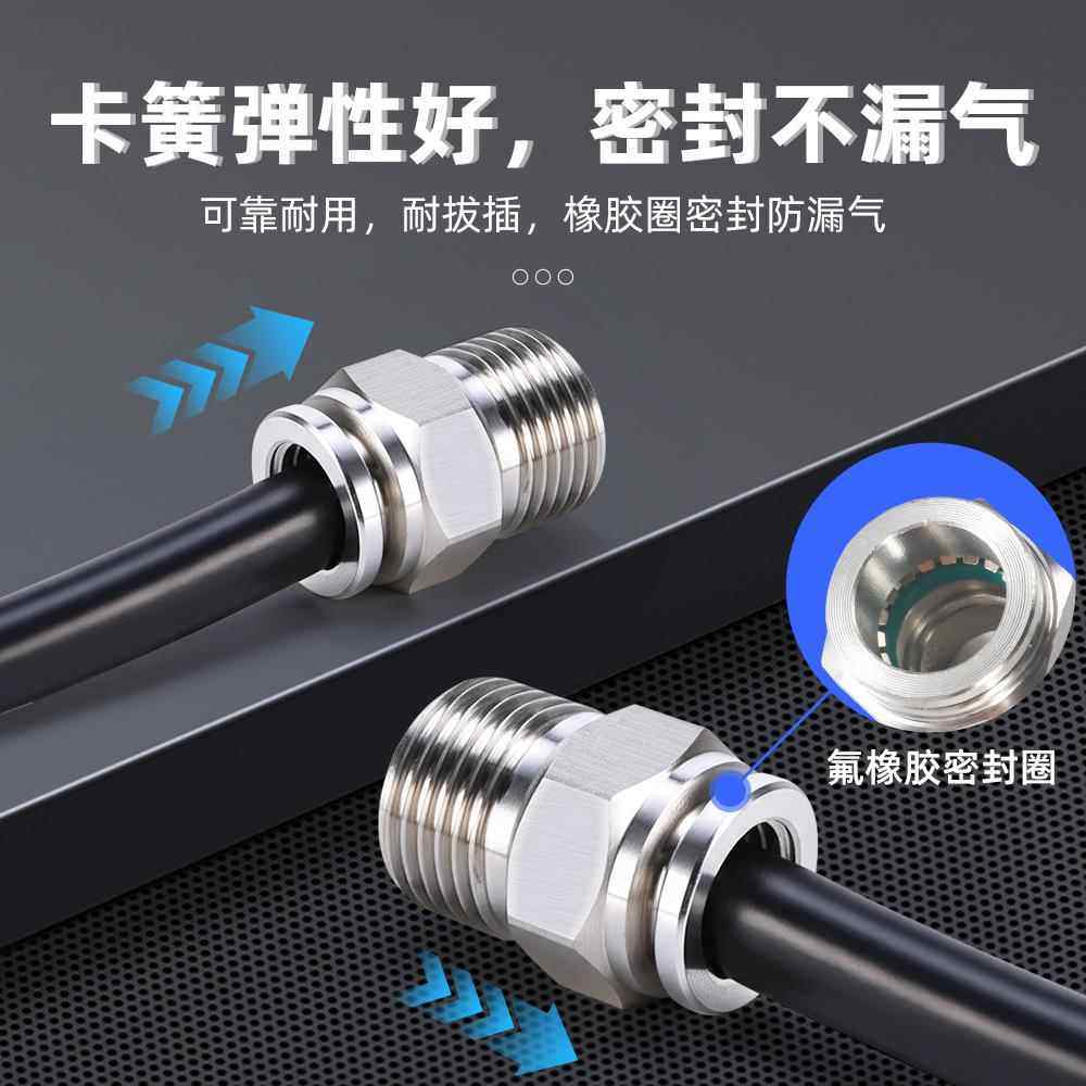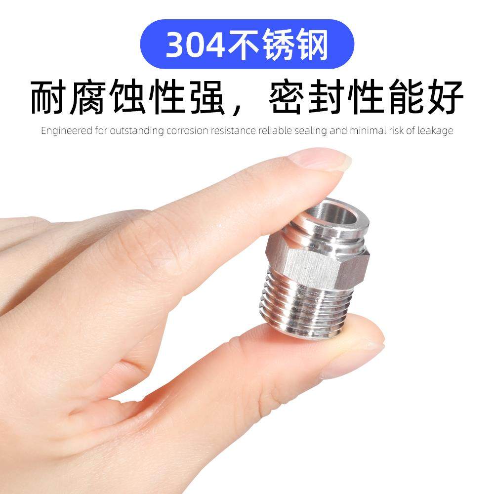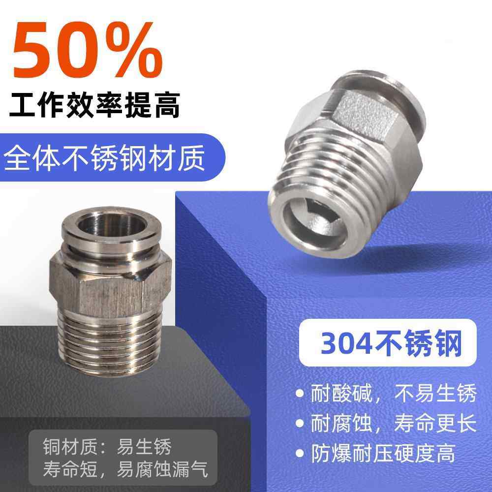 气动不锈钢304金属快插气管接头螺纹直通高压快拧快速气嘴PC4/6