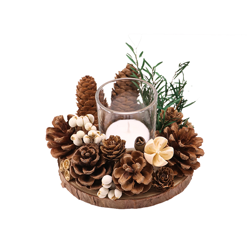 圣诞节烛台diy手工圣诞松木垫装饰品家居餐桌摆件松果烛台材料包