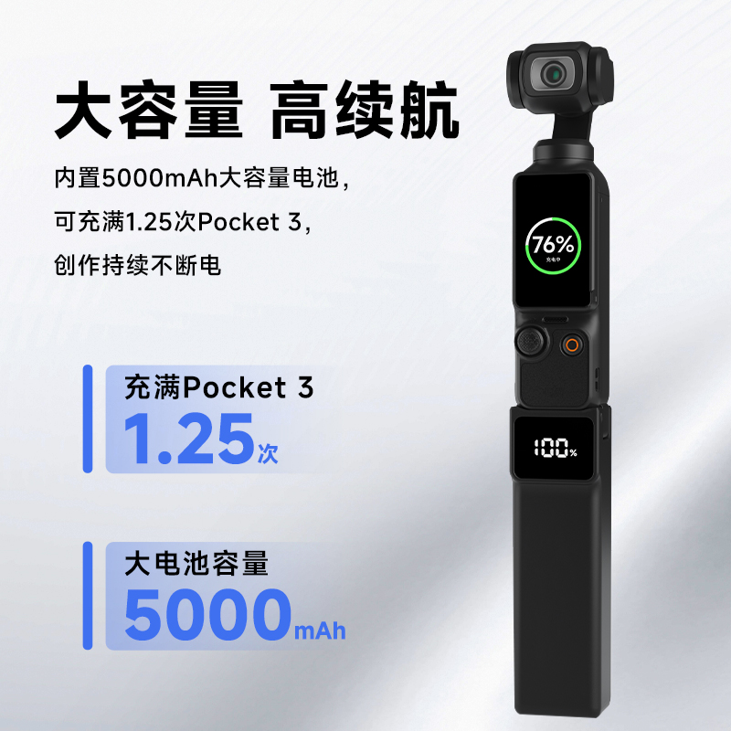 【国家3C认证】适用于大疆 DJI Osmo Pocket 3 续航手柄大疆灵眸口袋相机手持拓展配件5000毫安电池充电手柄