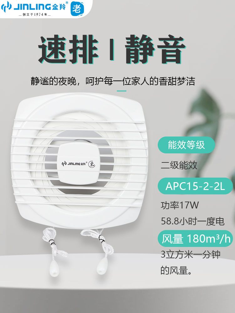 金羚排气扇6寸窗式换气扇卫生间圆孔排风扇双拉绳浴室密封静音扇