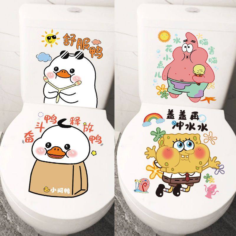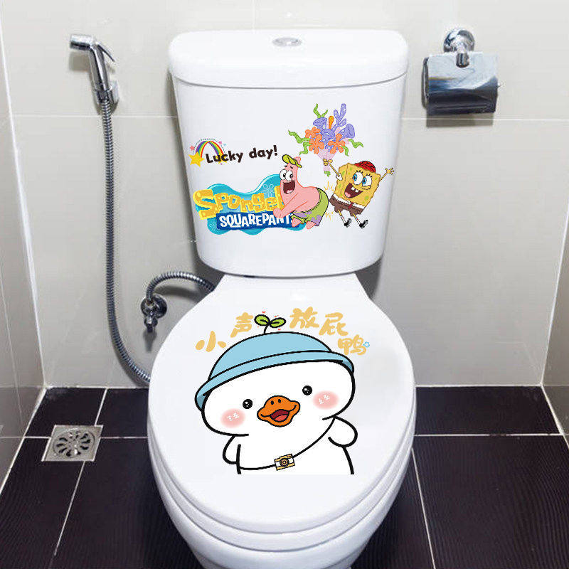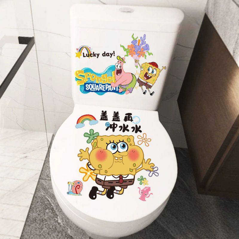 海绵宝宝创意儿童贴纸卫生间个性马桶贴可防水防潮装饰贴画高级感