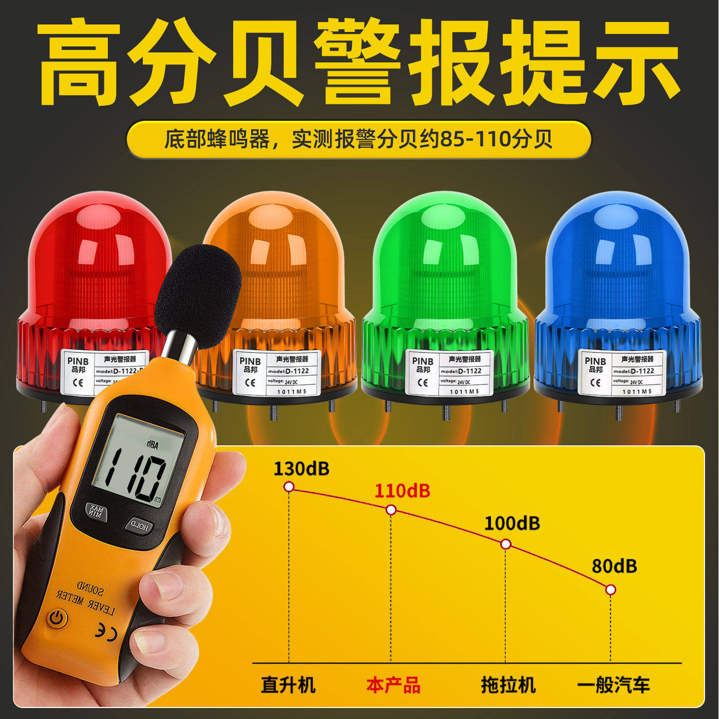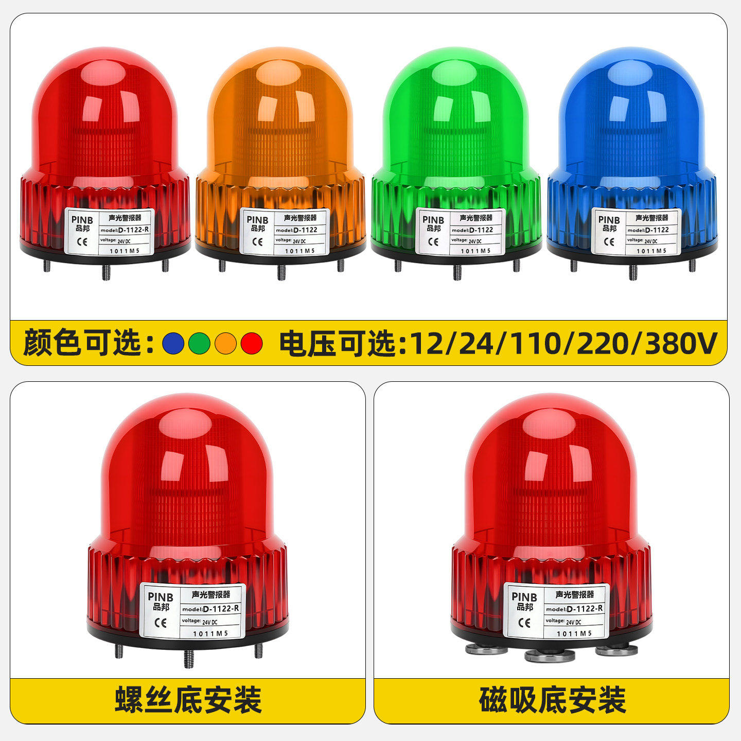 品邦旋转警示灯D-1122R爆闪报警灯220V24V红黄蓝绿声光一体闪烁灯