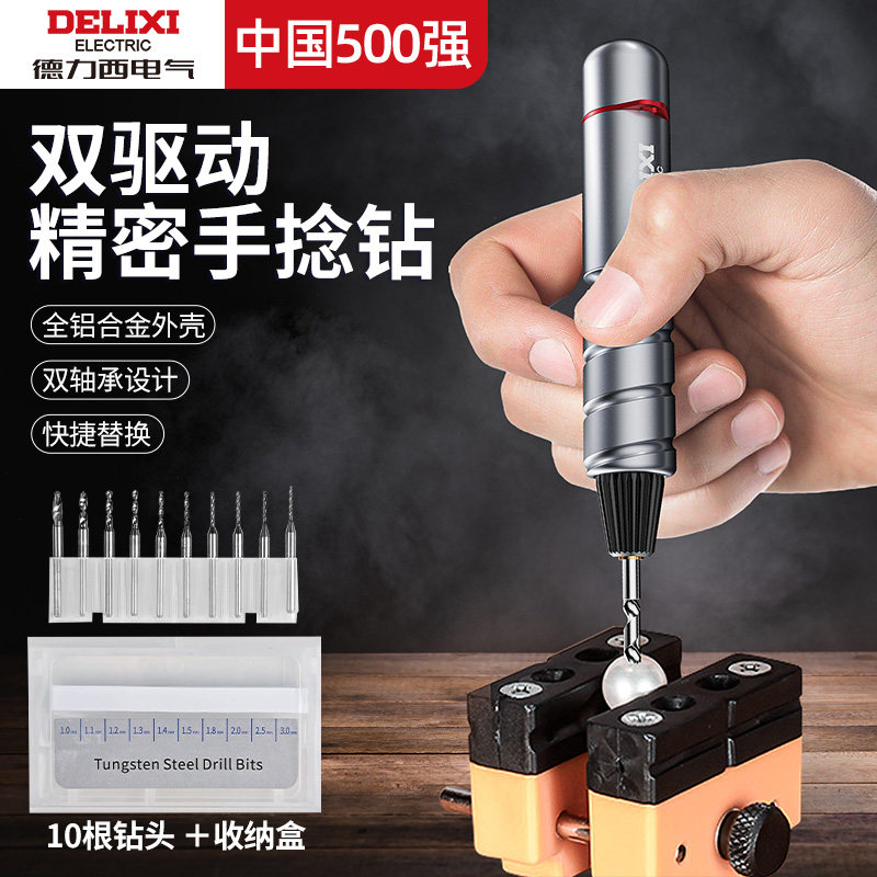德力西小型手捻钻迷你手钻半自动文玩打孔钻头木工diy工具打孔器